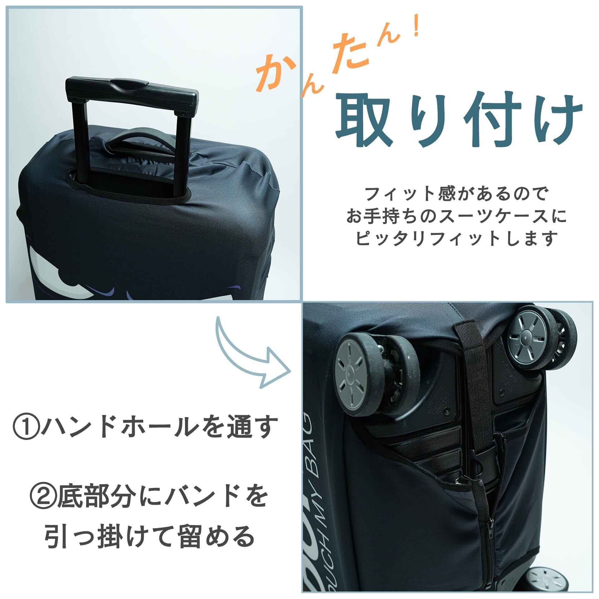【簡単装着】装着が簡単で、旅行前の準備時間を短縮できます。忙しい出発前でも手間取ることなく、スムーズにカバーを取り付けることが可能です。