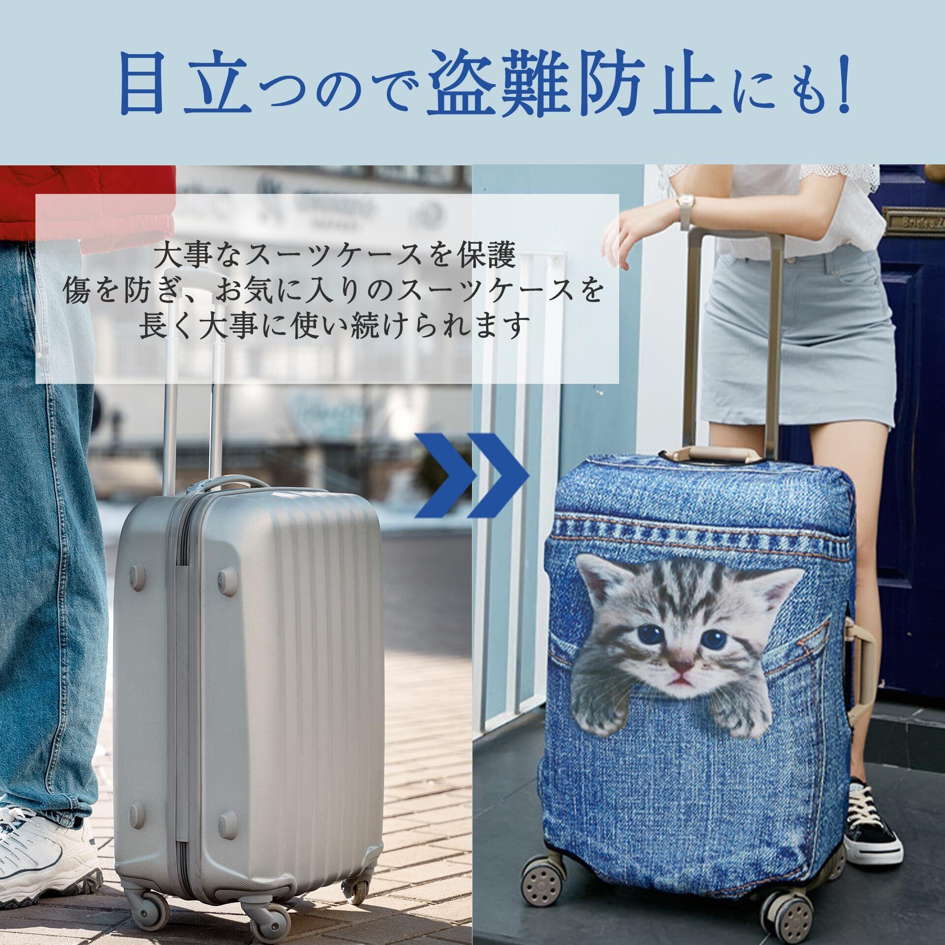 【サイズ対応】幅広いサイズのスーツケースをカバーできます。これにより、家族全員のスーツケースを一つのデザインのカバーで保護することが可能です。