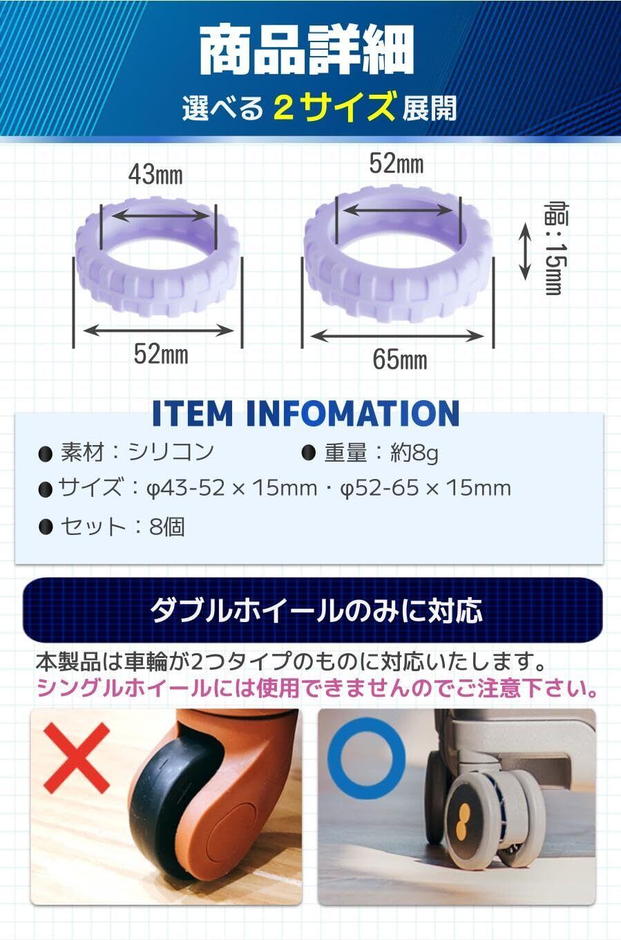 【高品質シリコン製】柔らかく弾力性に優れた高品質のシリコンで、タイヤの騒音をしっかりと防ぎます。床を傷つけることもなく、タイヤの汚れ防止としても大活躍!水洗いをすれば繰り返し使うことも可能です!
