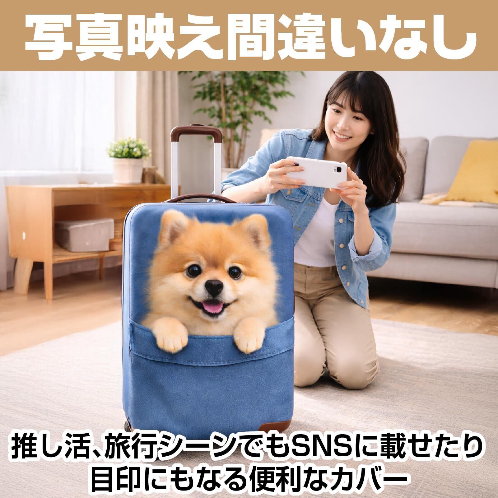 スーツケースカバー キャリーケース トランク かわいい 荷物 保護 旅行 犬 ポメラニアン (ポメラニアンM)