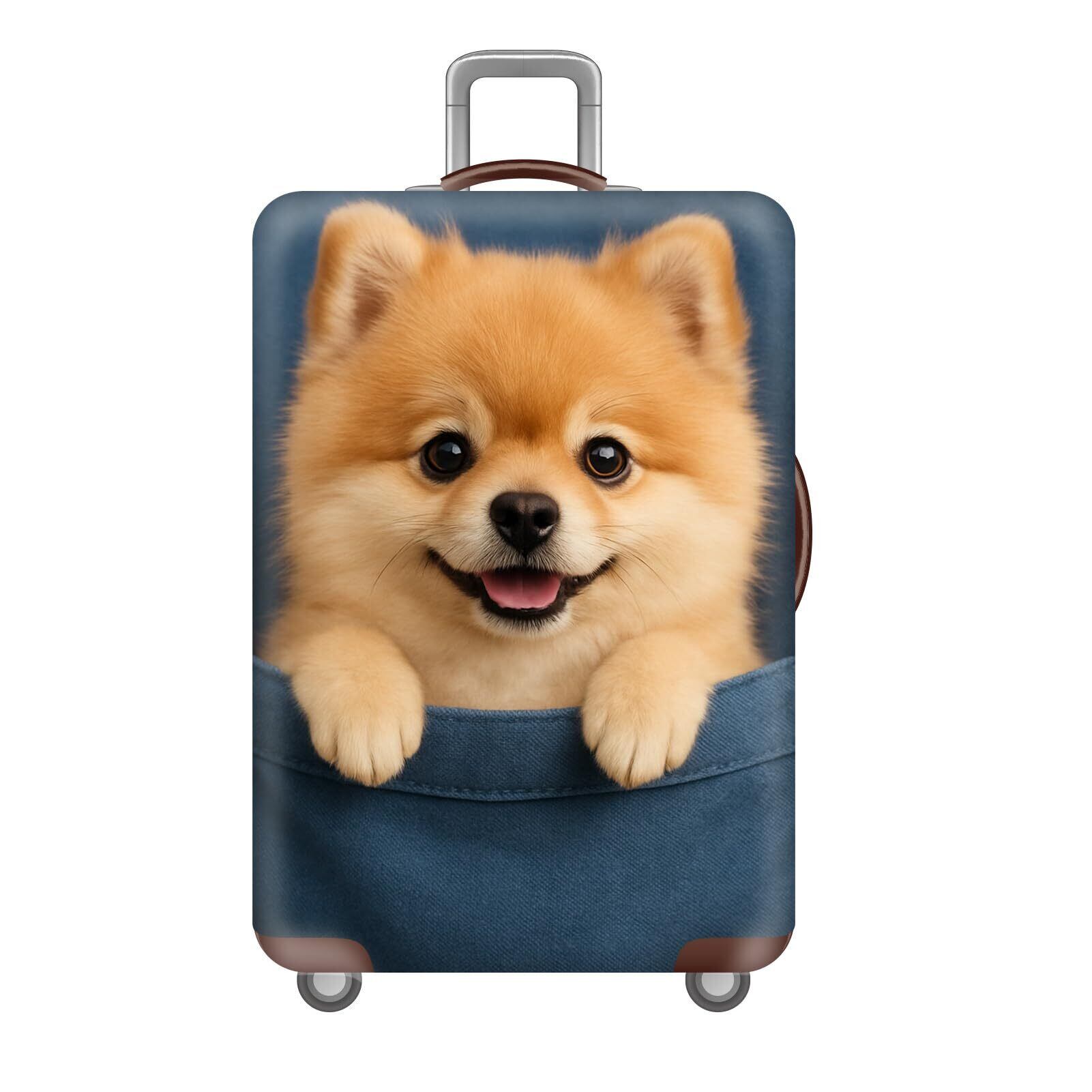 【スーツケースカバー かわいい ポメラニアン】 ポメラニアンの愛らしいデザインが目を引くスーツケースカバー。犬好きな方にぴったりで、空港や街中でも自分のトランクがすぐ分かり、旅の気分をぐっと高めてくれます。