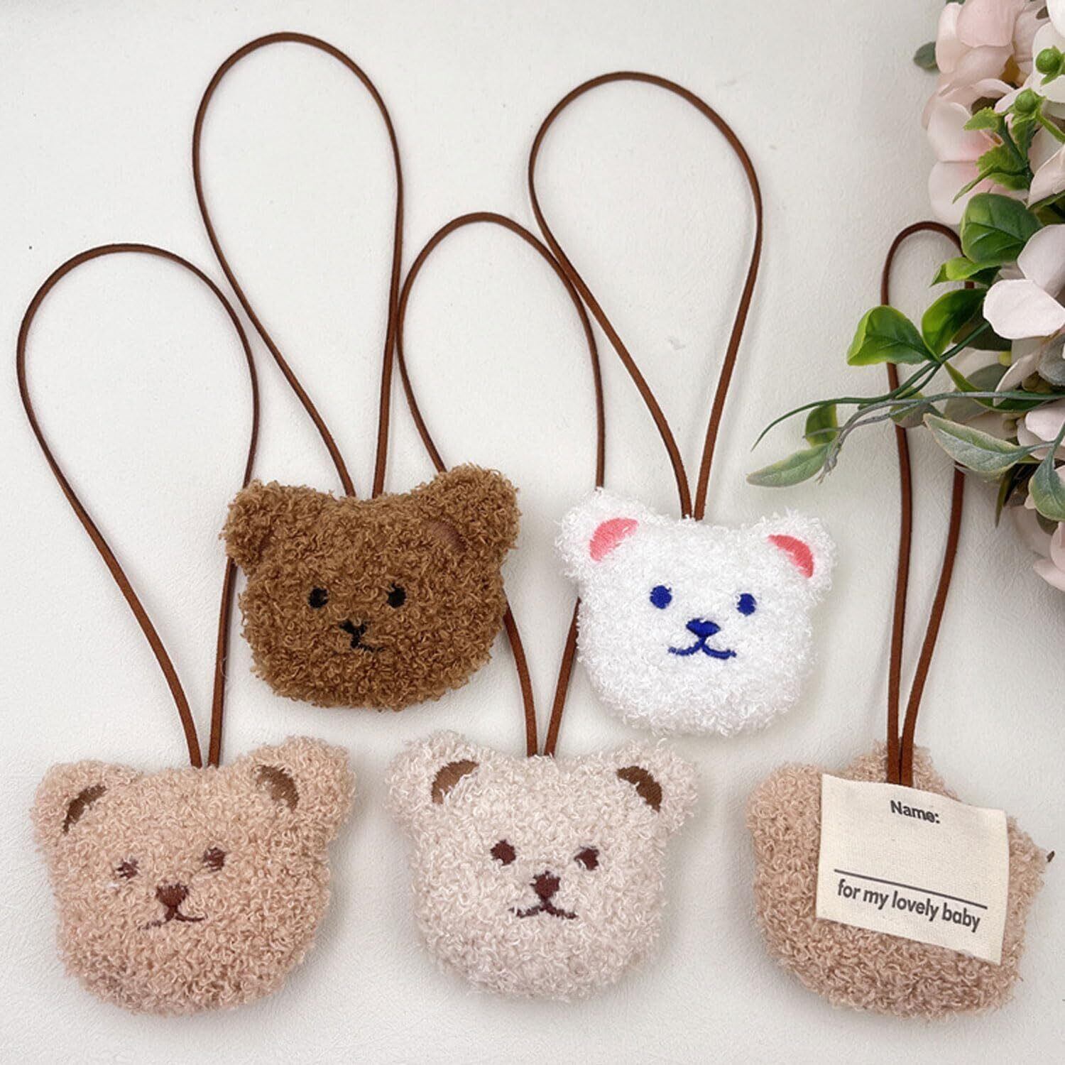 ラゲッジタグ(ダーク/ライト/ホワイト/ベージュ各1個)ラゲッジタグ キャラクター ネームタグ 子供 モコモコくま 荷物タグ バッグタグ スーツケースタグ 名前タグ お名前シール代わり ストラップ