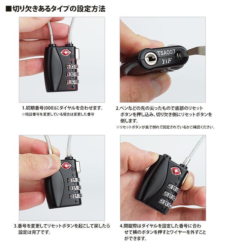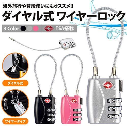 TSA ダイヤル式 ワイヤーロック 南京錠 TSAロック 暗証番号 海外 旅行 空港 検査 鍵 盗難防止 スーツケース キャリーケース 日本語説明書付き (ブラック) PR-TSALOCK-BK