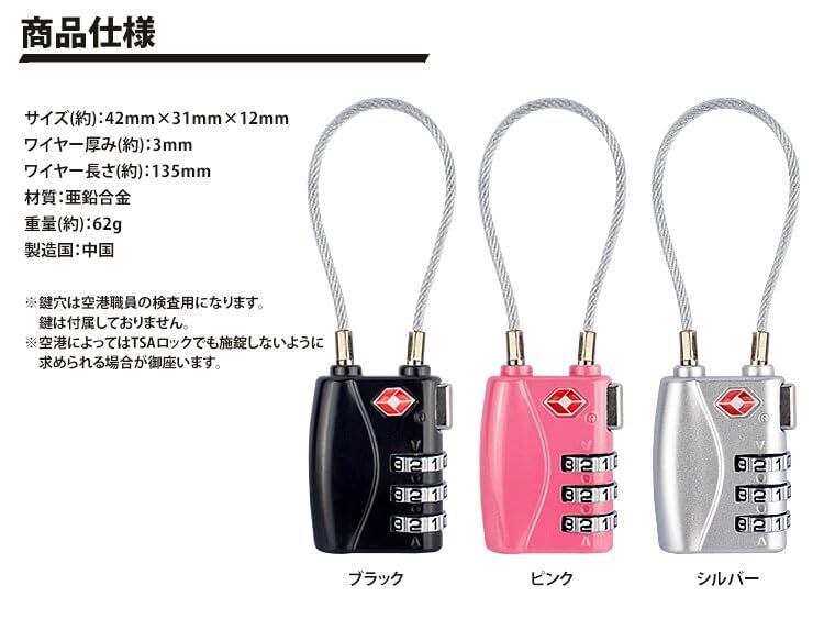 【在庫処分】TSA ダイヤル式 ワイヤーロック 南京錠 TSAロック 暗証番号 海外 旅行 空港 検査 鍵 盗難防止 スーツケース キャリーケース 日本語説明書付き (ブラック) PR-TSALOCK-BK