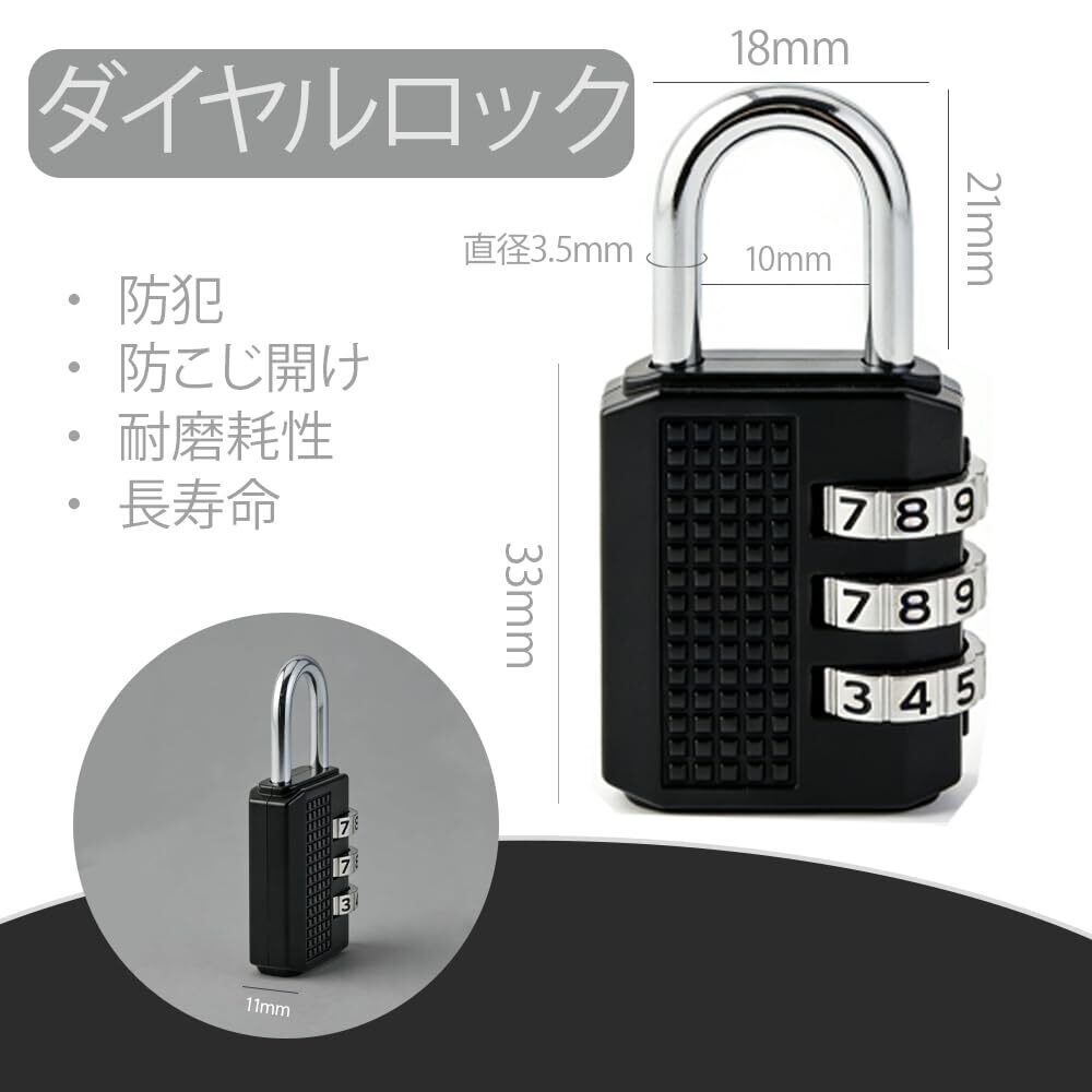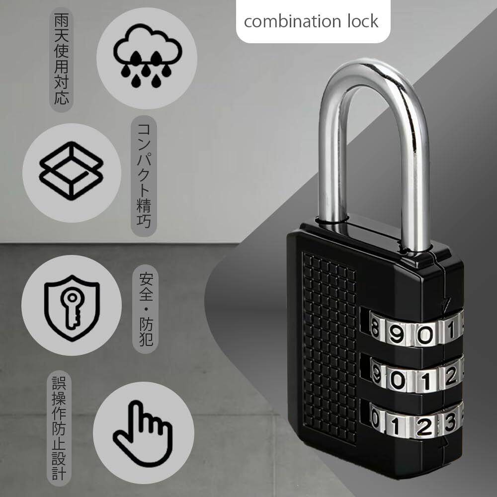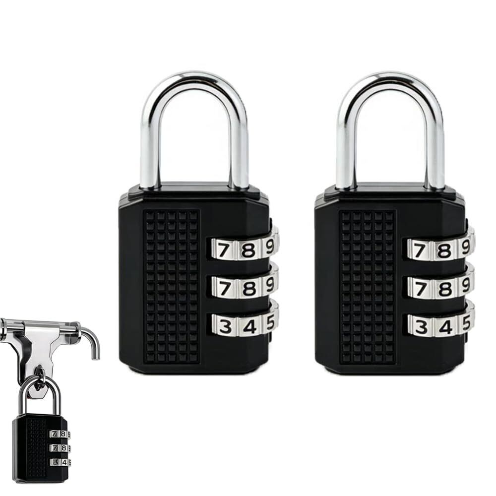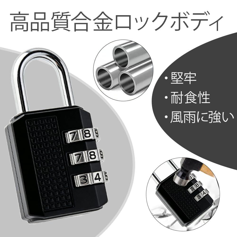 南京錠 3 桁コンビネーションロック 暗証番号式 小型軽量 盗難防止 防水防錆 補助錠 旅行荷物 バックパック 学校ロッカー 倉庫 アウトドア対応 2 個セット ブラック