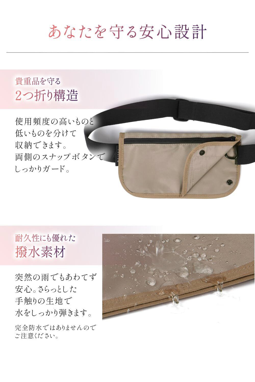 【旅行後もお財布代わりに大活躍】ジム 災害時 フェス・アウトドア 宿泊施設の移動 にもお使いいただけます! \耐久性にも優れた撥水素材/ 突然の雨でも慌てず安心。さらっとした手触りの生地で水をしっかり弾きます。