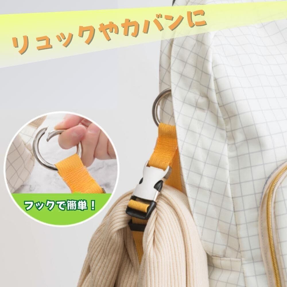 【ジャケットの持ち歩きに】上着を脱いで手が塞がってしまう時のお役立ちアイテムです。リュックやカバンにジャケットをくくりつけて手荷物を減らすことができます。帽子やマフラーのような小物にも使えますので、忘れ物の防止にも役立ちます。