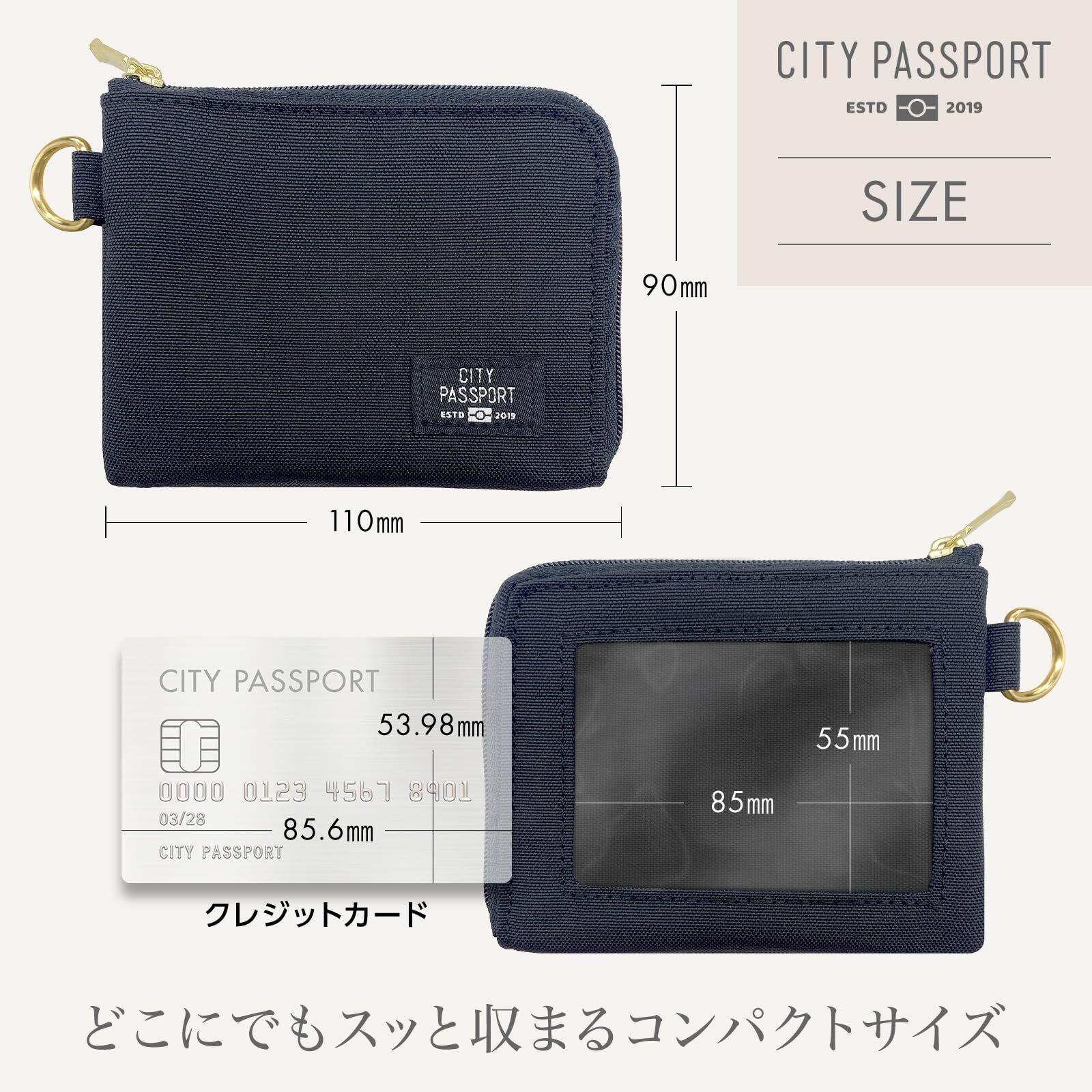 財布 小型 パスケース コインケース 防水、高耐久生地 CITYPASSPORT (ネイビー)