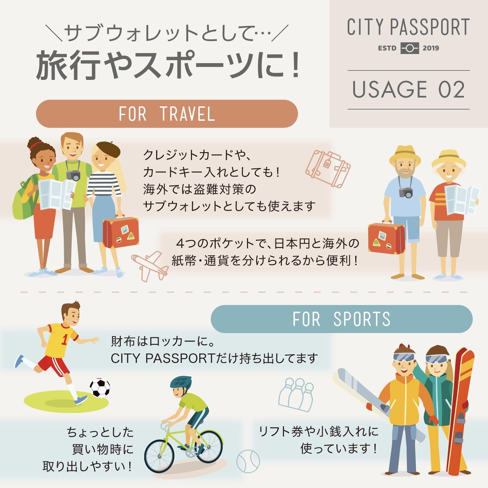 アウトドアに最適な防水、高耐久生地デューロン合成皮革を使用したCITYPASSPORT。*商品は完全防水ではございません