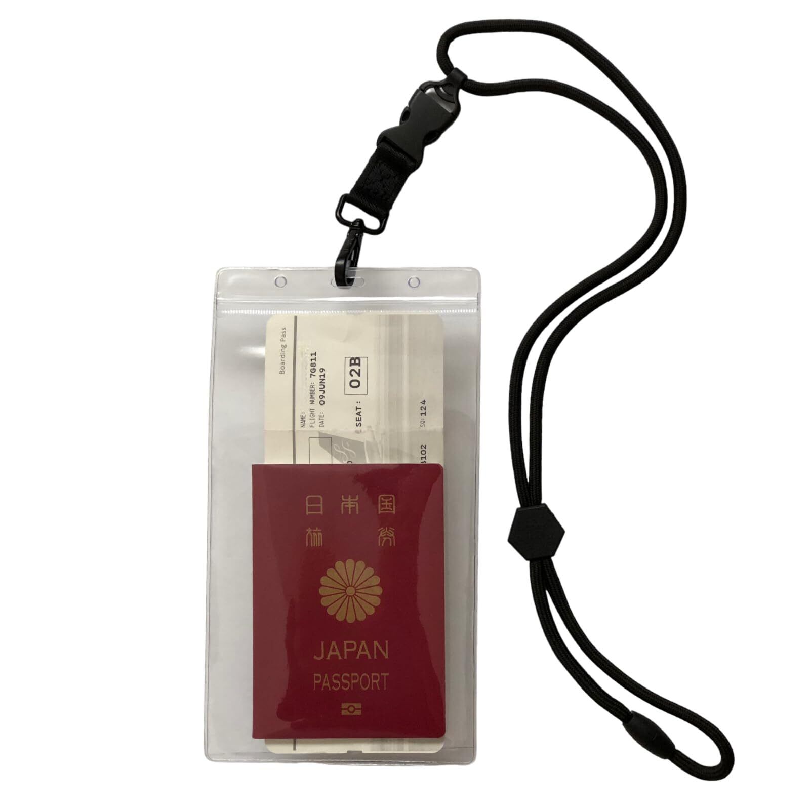 【新春セール】チケットホルダー 首掛け パスポート ケース 首下げ 防水 透明 軽量 航空券 パスケース パスポートホルダー パスホルダー (1, ブラック)