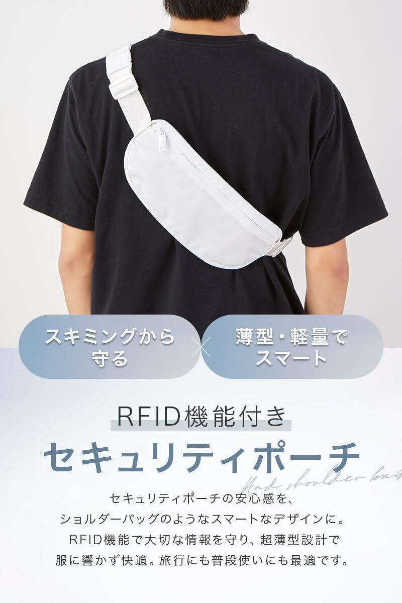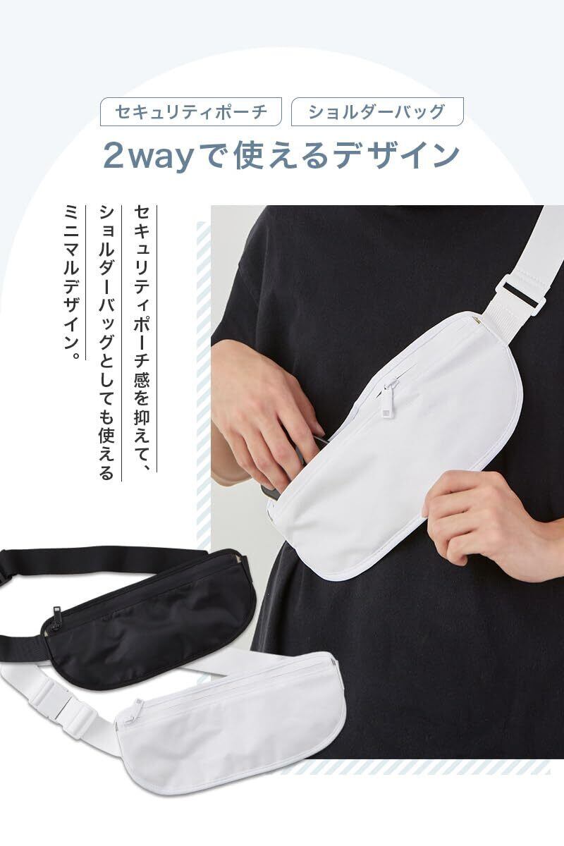 セキュリティポーチ RFID スキミング防止 防水 パスポートケース 海外旅行 貴重品入れ 薄型 軽量 トラベルポーチ ボディバッグ 隠しポケット 機内持ち込み メンズ レディース 2WAY ショルダー ウエストポーチ ブラック ホワイト (ホワイト)