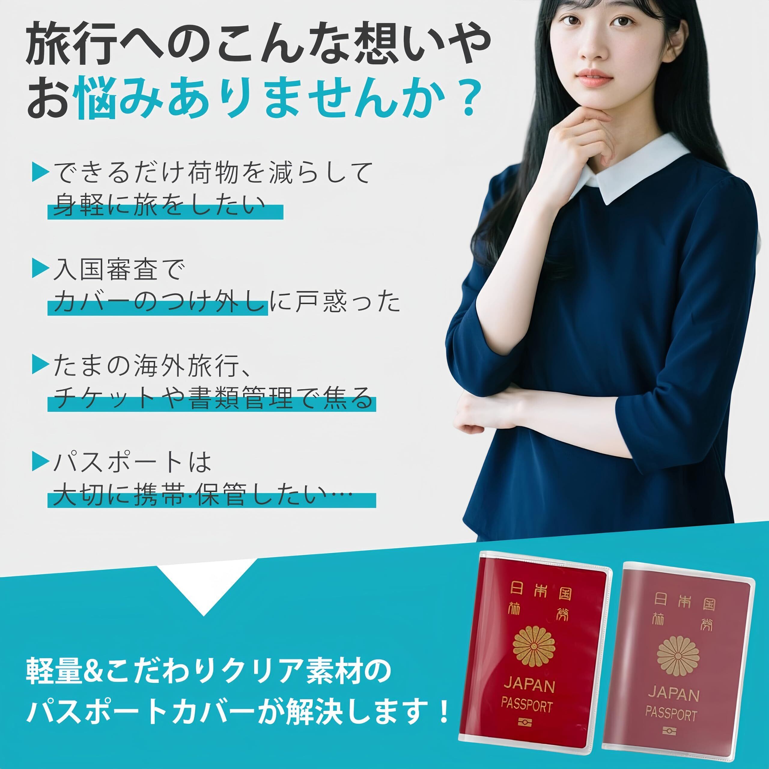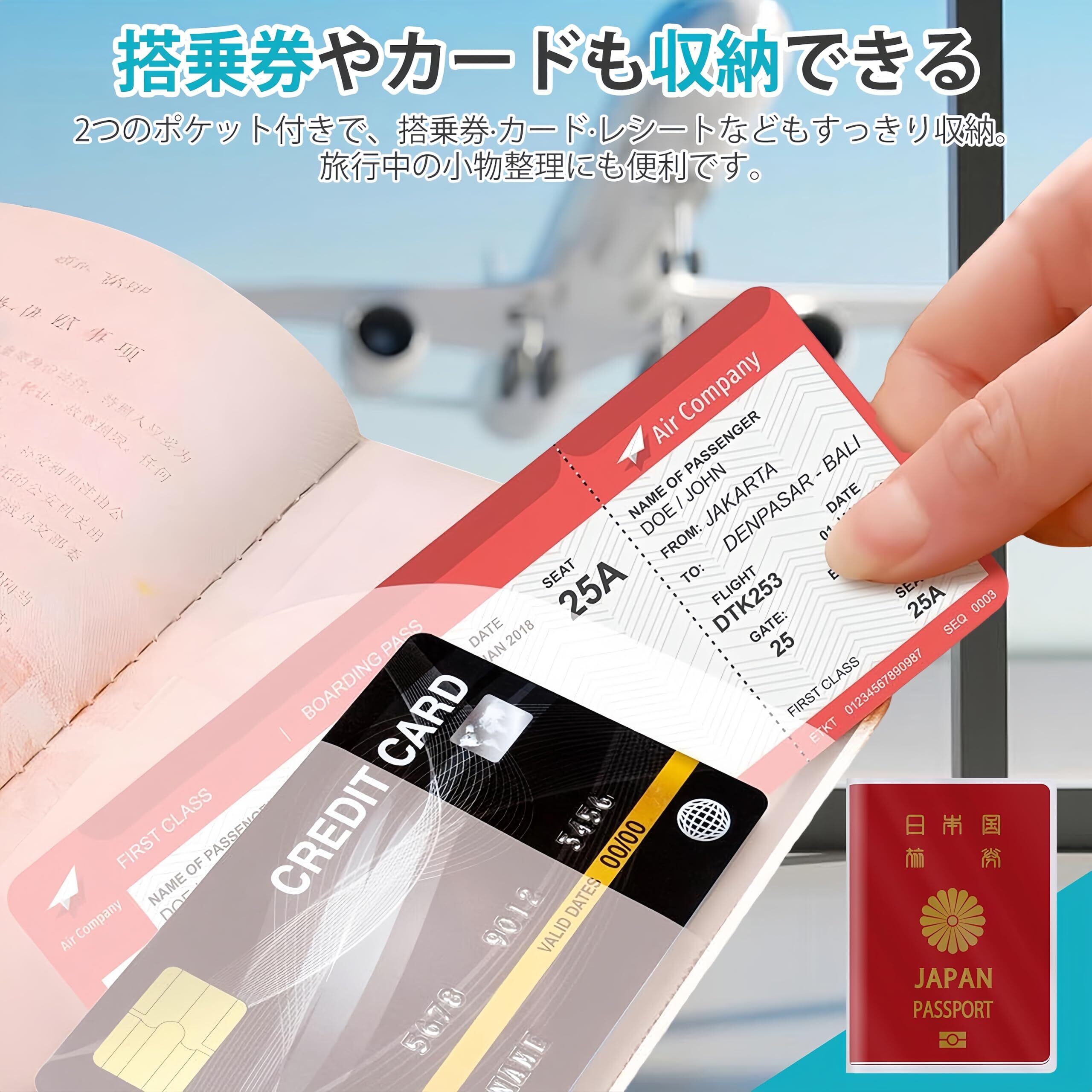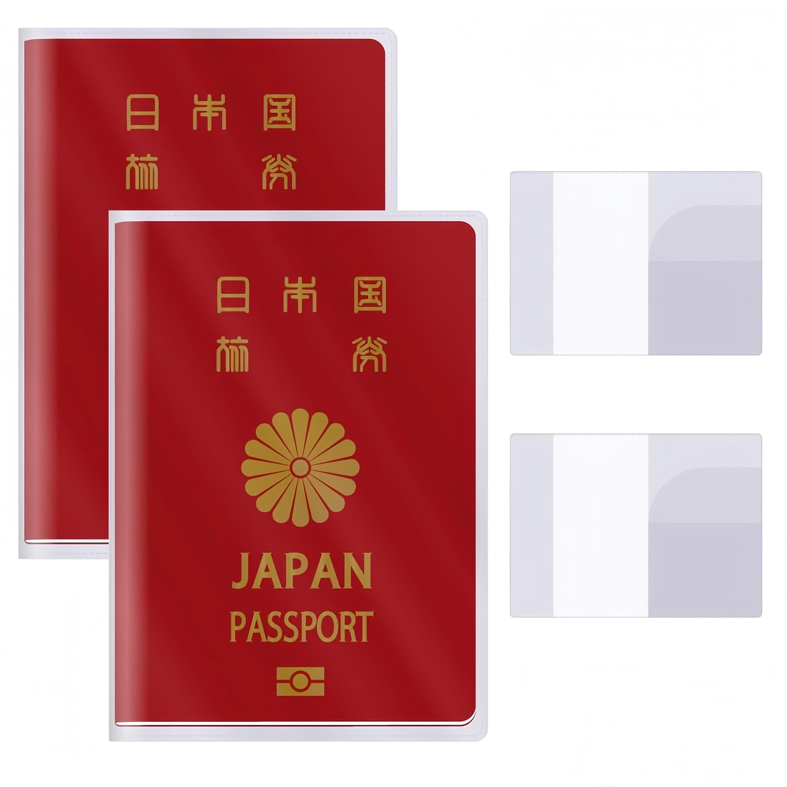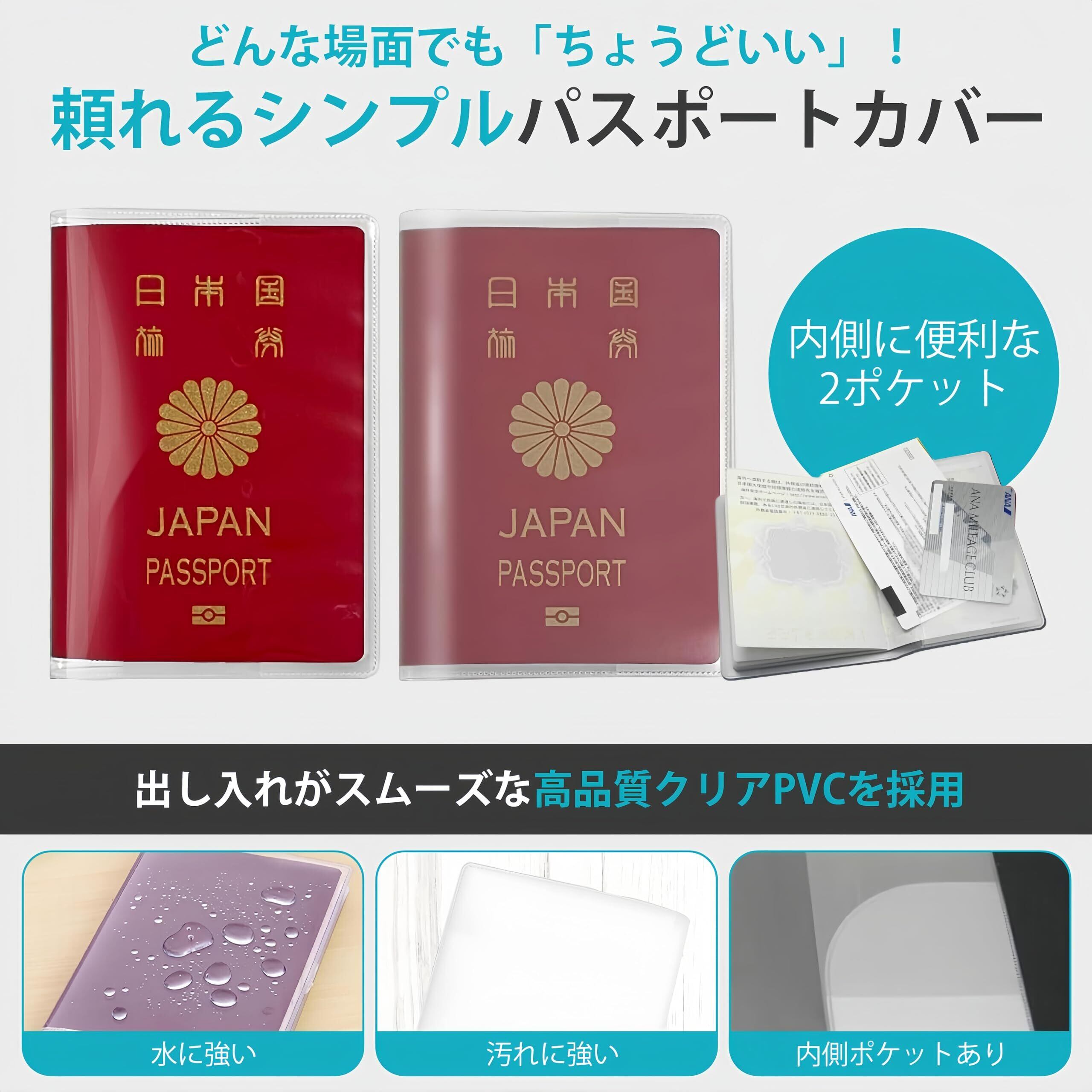 パスポートケース クリアカバー カードケース 防水 軽量 薄型 パスポートホルダー 旅行グッズ 出入国 海外出張 多機能収納ポケット付き 2枚入り (透明)