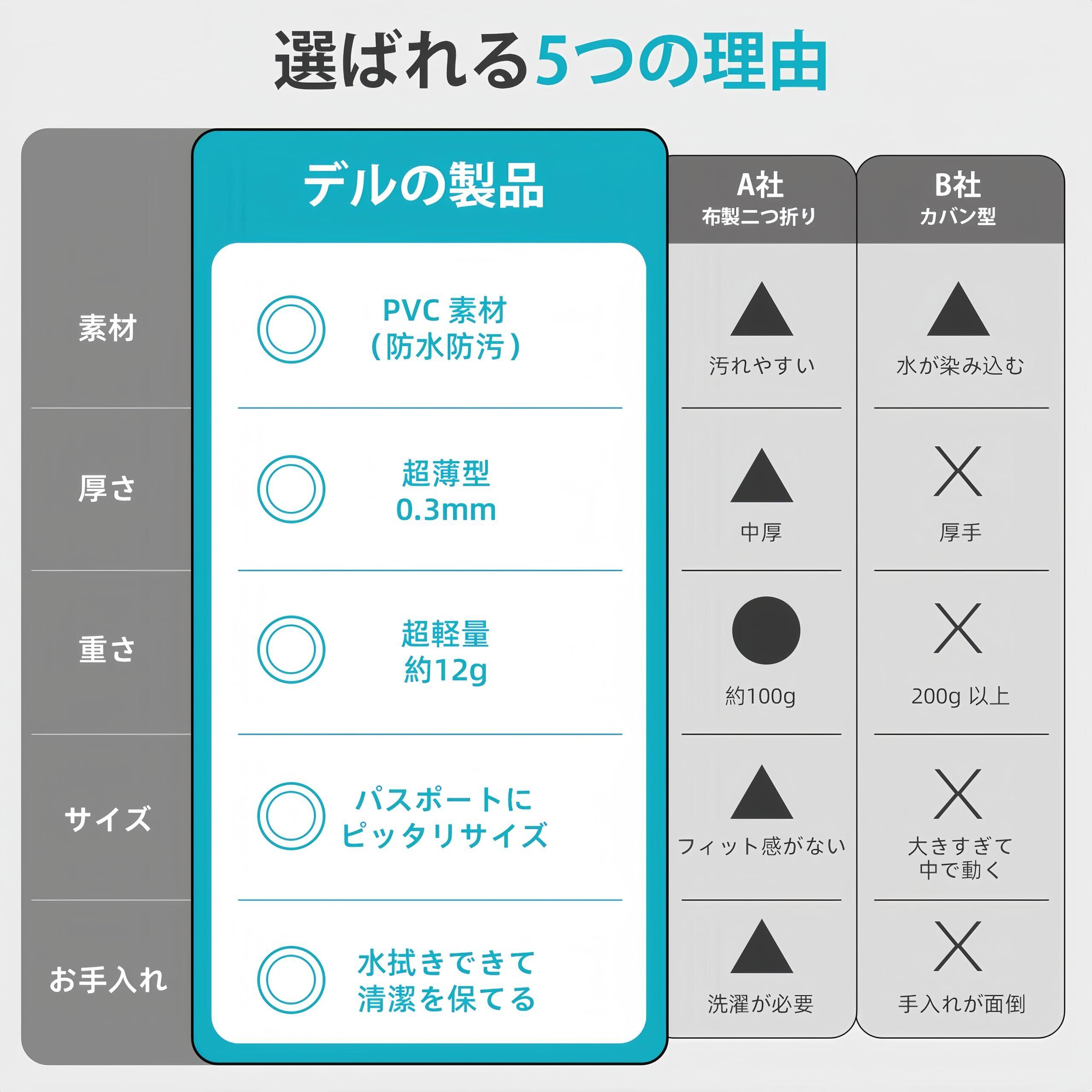 防水・防塵仕様:本パスポートホルダーは厚手で高強度のPVC素材を採用しており、水の浸入をしっかり防ぐだけでなく、ケース内へ埃が入るのも防止します。旅行中の悪天候でもパスポートを清潔に保ち、まるで新品のような状態をキープできます。