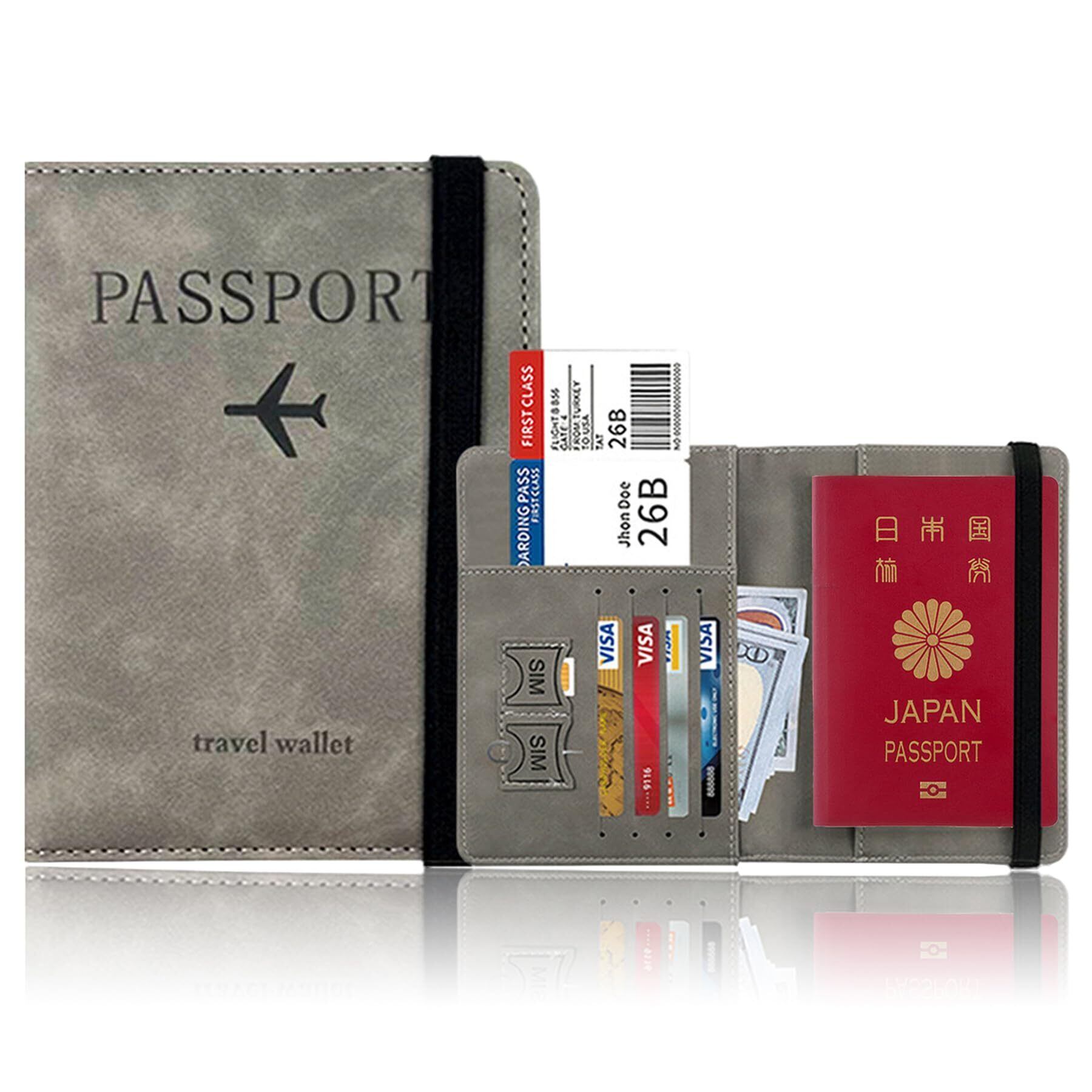 【在庫セール】パスポートケース スキミング防止 高級PUレザー 多機能収納ポケット エアチケット パスポートカバー RFID 磁気防止 セキュリテ 軽量 コンパクト 防犯対策 海外旅行 旅行用品 (グレー)