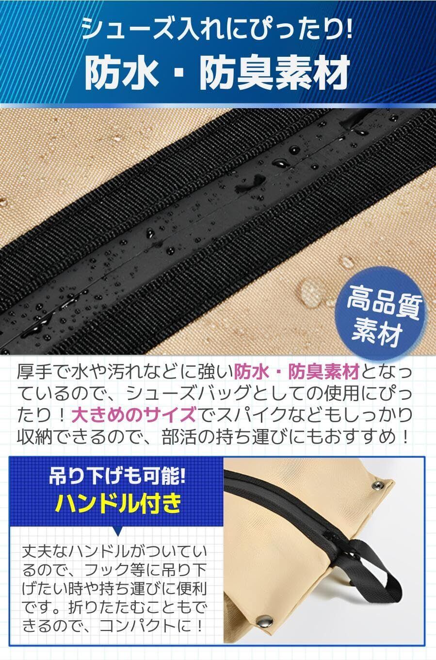 【防水・防臭素材】厚手で水や汚れなどに強い防水・防臭素材となっているので、シューズバッグとしての使用にぴったり!大きめのサイズでスパイクなどもしっかり収納できるので、部活の持ち運びにもおすすめ!