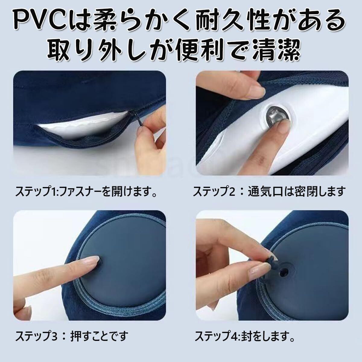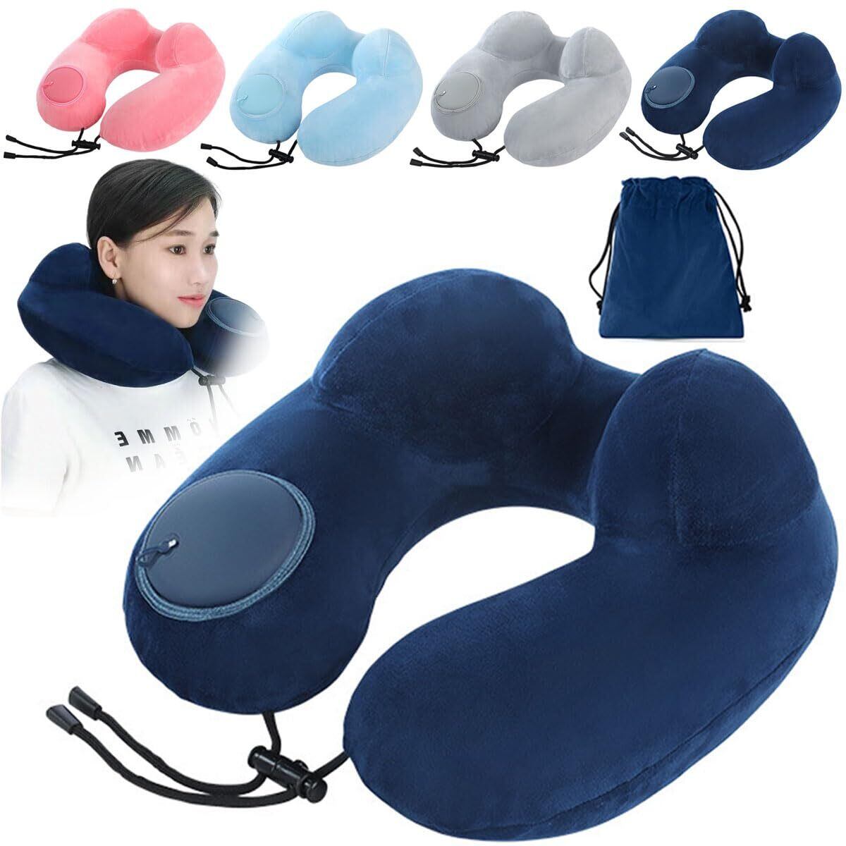 ネックピロー 旅行用 携帯枕 首枕 プレス式 U型 エアーピロー ポンプ式 U型まくら コンパクト 軽量 持ち運び便利 旅行便利 クッション 飛行機 新幹線 バス 車 オフィス 自宅 昼寝 プレゼント 収納袋付き (ネイビー)