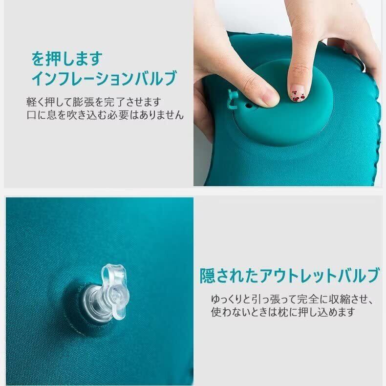 Krucio ネックピロー ネックピロー 飛行機 枕U型まくら 首枕 エアーピロー手動プレス式膨らませる 旅行用 飛行機 トラベル 空気枕ス オフィス 旅行便利グッズ 携帯枕 (グリーン)