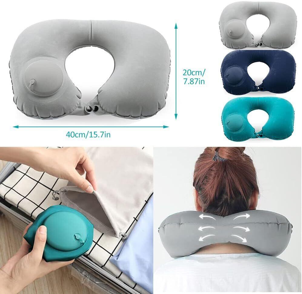 【トラベルピロー】膨らませやすいトラベルネックピロー。 旅行、飛行機、オフィス、出張、昼休み用のユニセックス、軽量でコンパクト。