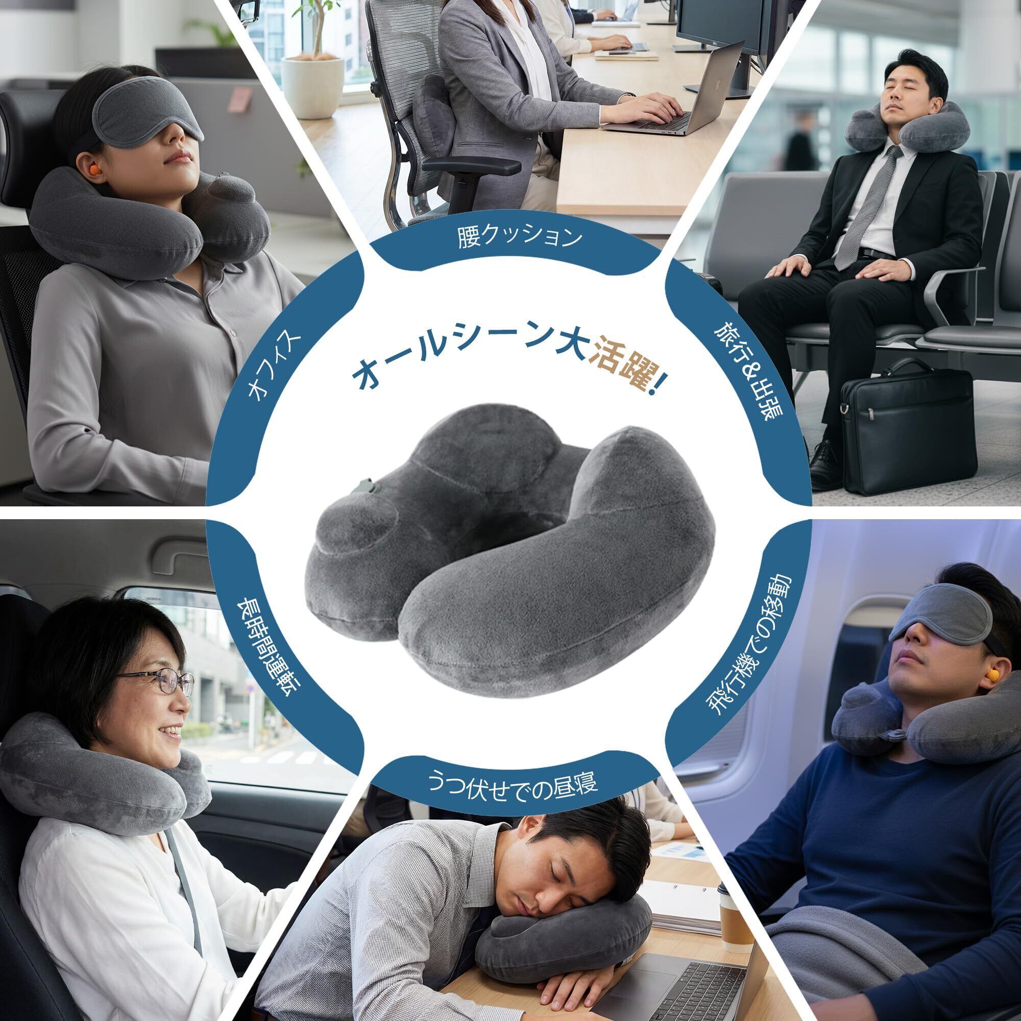 【多用途で便利なグッズ】飛行機やオフィスの休憩はもちろん、昼寝用の枕や、腰・足・腕のサポートクッションとしても活用できます。移動中、自宅、職場…あらゆるシーンで役立つ便利さ。ご自身用はもちろん、家族や友人への贈り物としても最適です。
