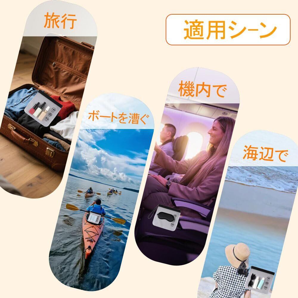 コンパクト設計と機内持ち込み対応: 20×20cm のコンパクトサイズで収納が簡単です。4個セット スマホ防水ケース並みの汎用性を持ち、空港保安検査をスムーズに通過できます。