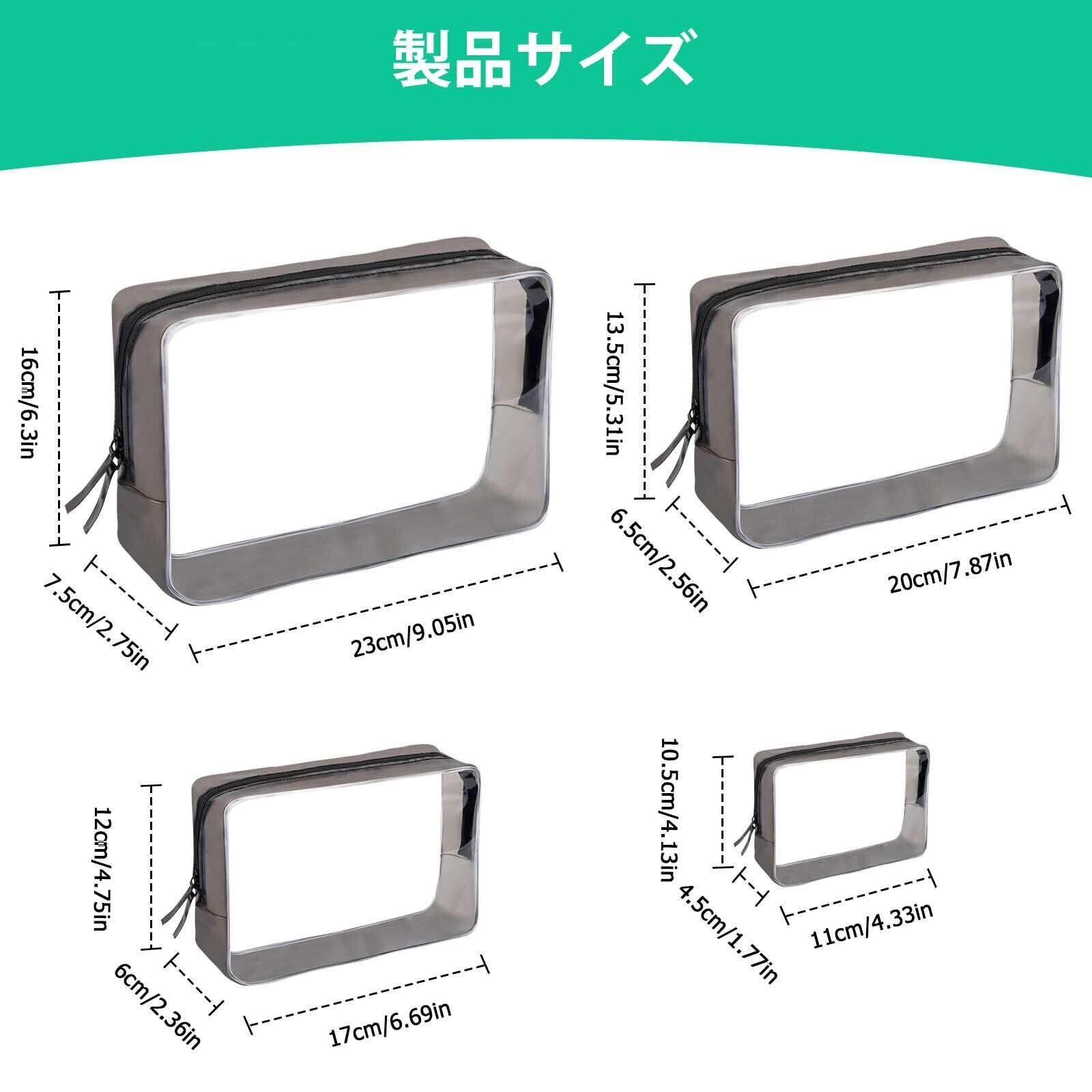 4点セット 透明トラベルトイレタリーバッグ コスメポーチ トラベルポーチ PVC化粧ポーチ 洗面用具ポーチ ッパーコスメポーチトラベルポーチ 防水 化粧品入れ 大容量 化粧品入れ 小物整理 軽量 小物入れ 持ち運び トラベルポーチ 男性と女性用 出張 旅行