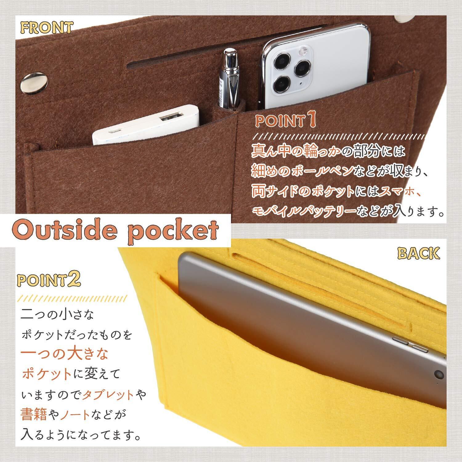 5つの内側ポケット 5つの小さなポケットが配置されている バッグインバッグ はモバイルバッテリーやスマホなどの収納に適しておりますのでバッグの中を探す手間も省きます。