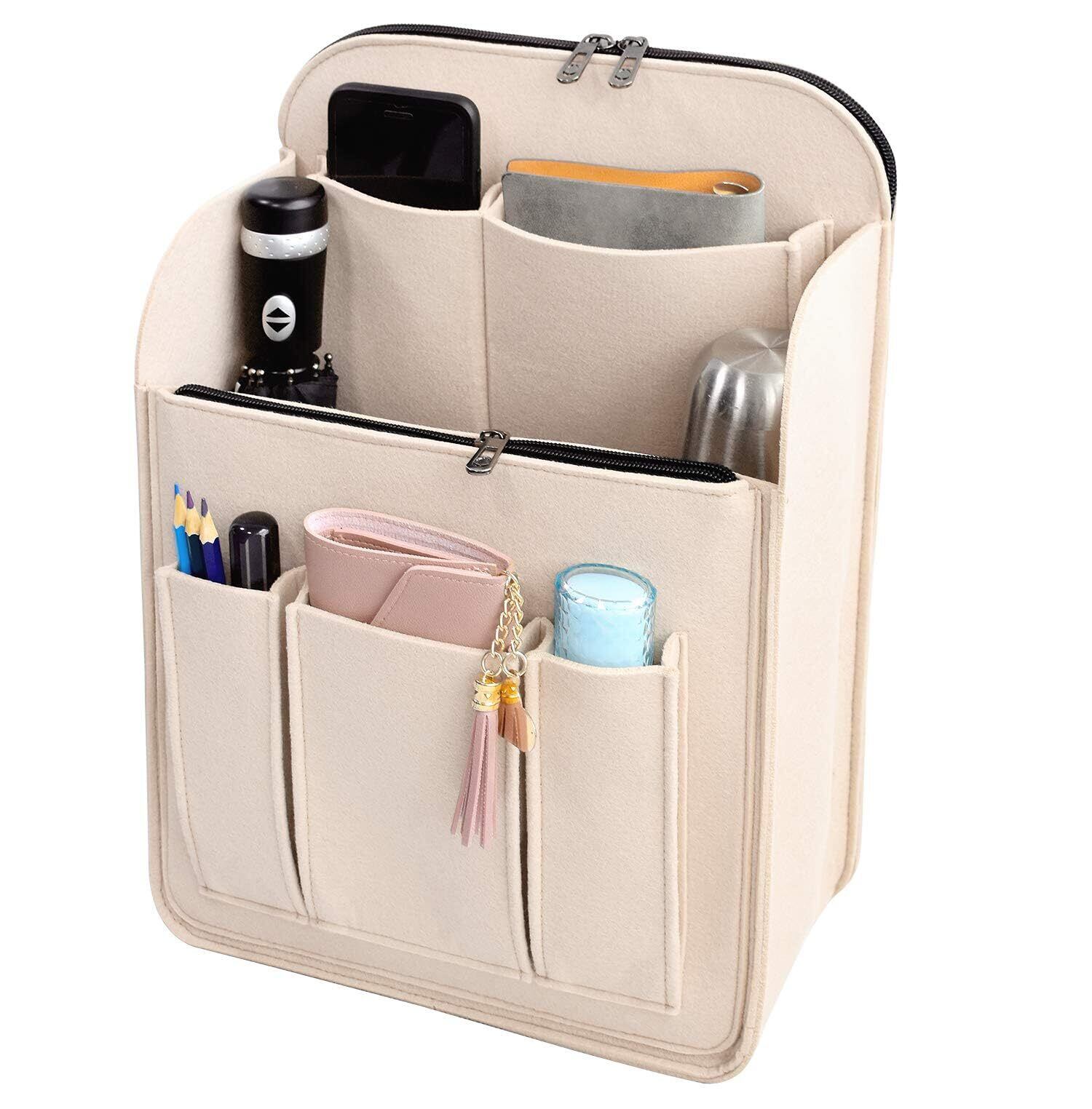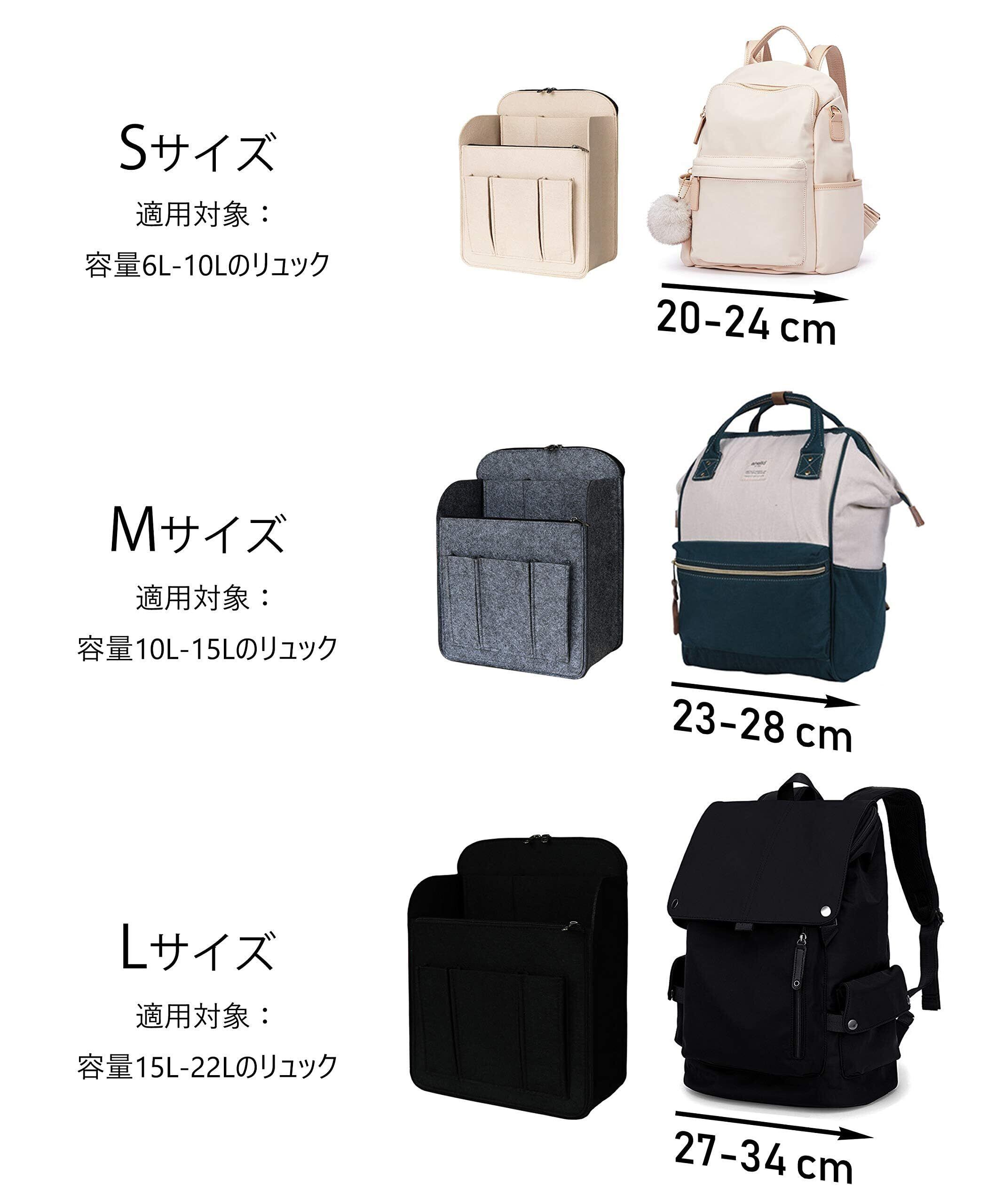 【リュック上部のスペース】大きめリュックインナーバッグでよく存在する「たっぷり入れると自立されない」との問題を対応するため、1層式のフェルトを機能性のあるファスナーポケットに変身。書類やノートパソコンをキレーに収まれるし、バックパック上部のスペースも最大限に活用させられます。