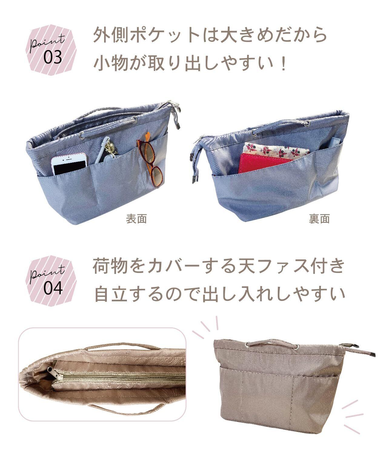 バッグインバッグ インナーバッグ 軽量 サブバック対応機能付き (ベージュ)