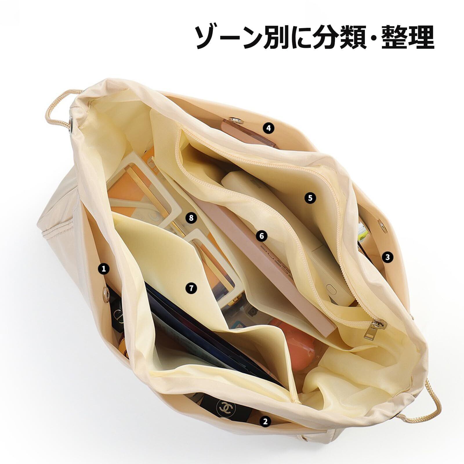 バッグの中身をそのまま移動:バッグを交換する際には、このバッグインバッグごと移動するだけで、小物の整理をやり直す手間を省けます。