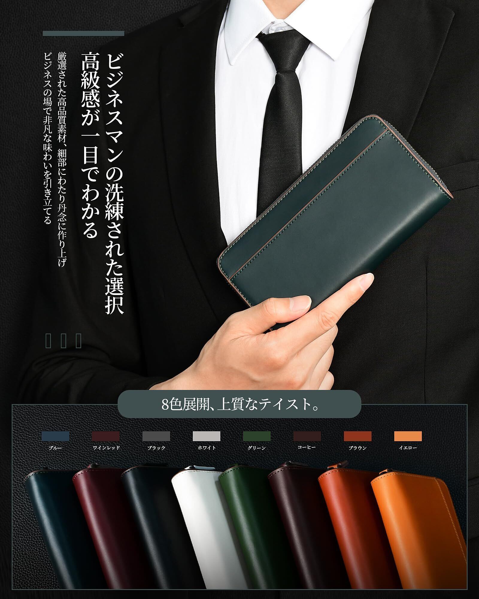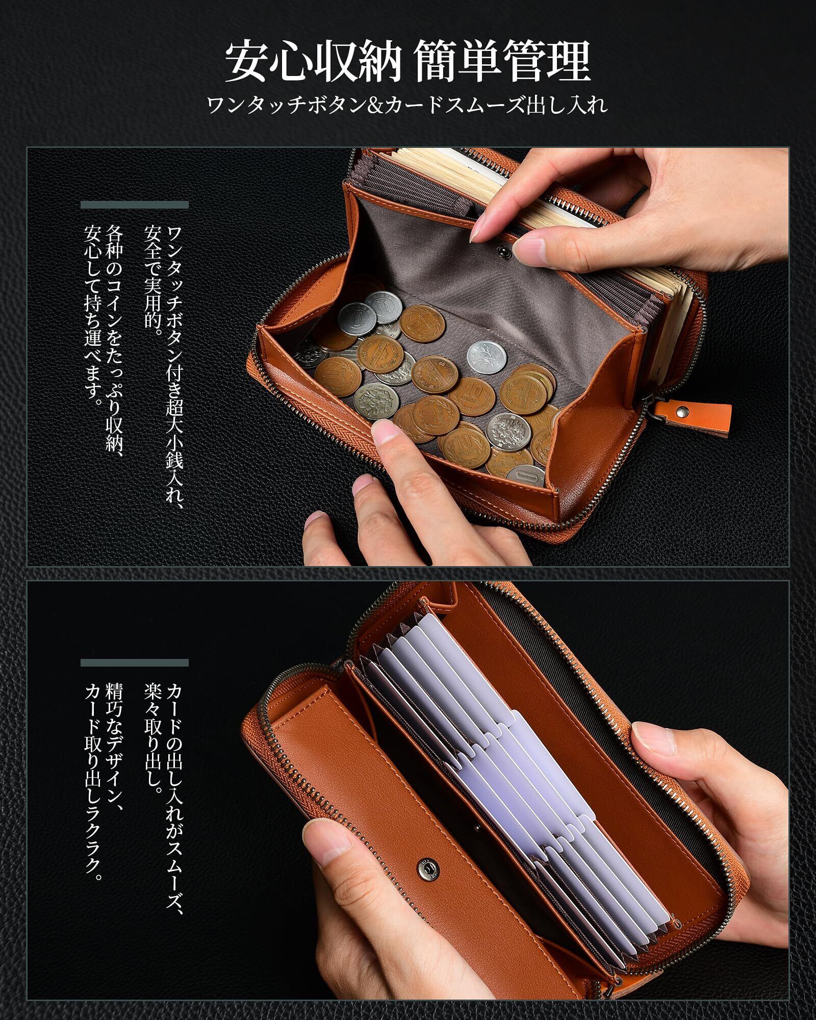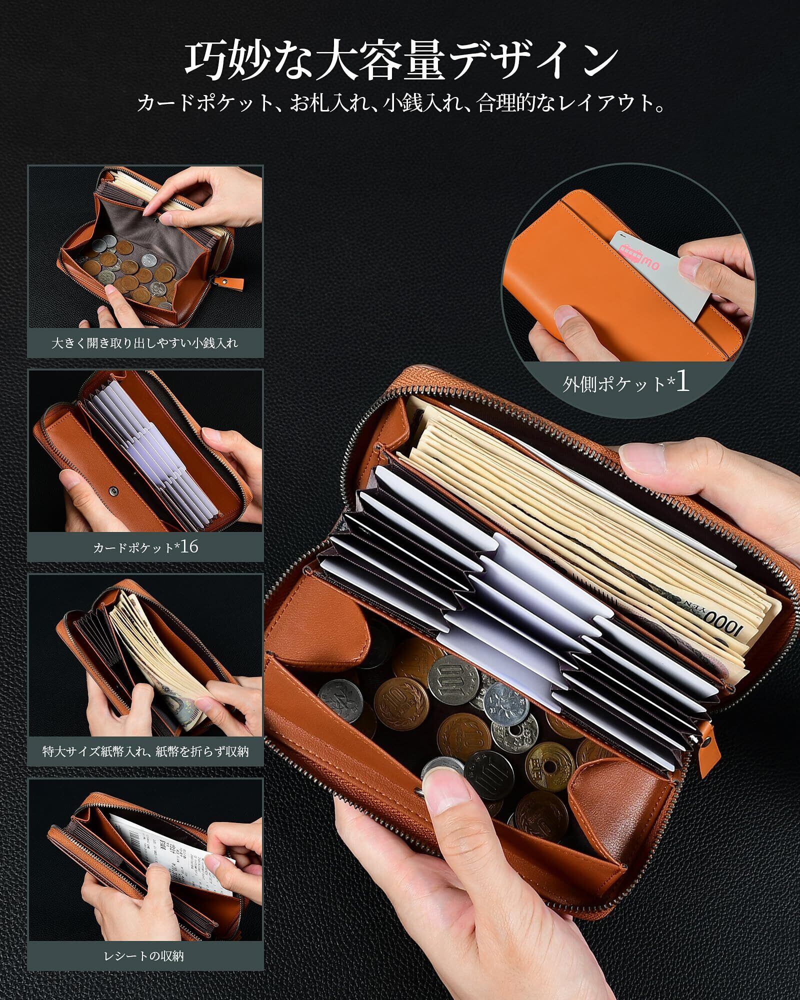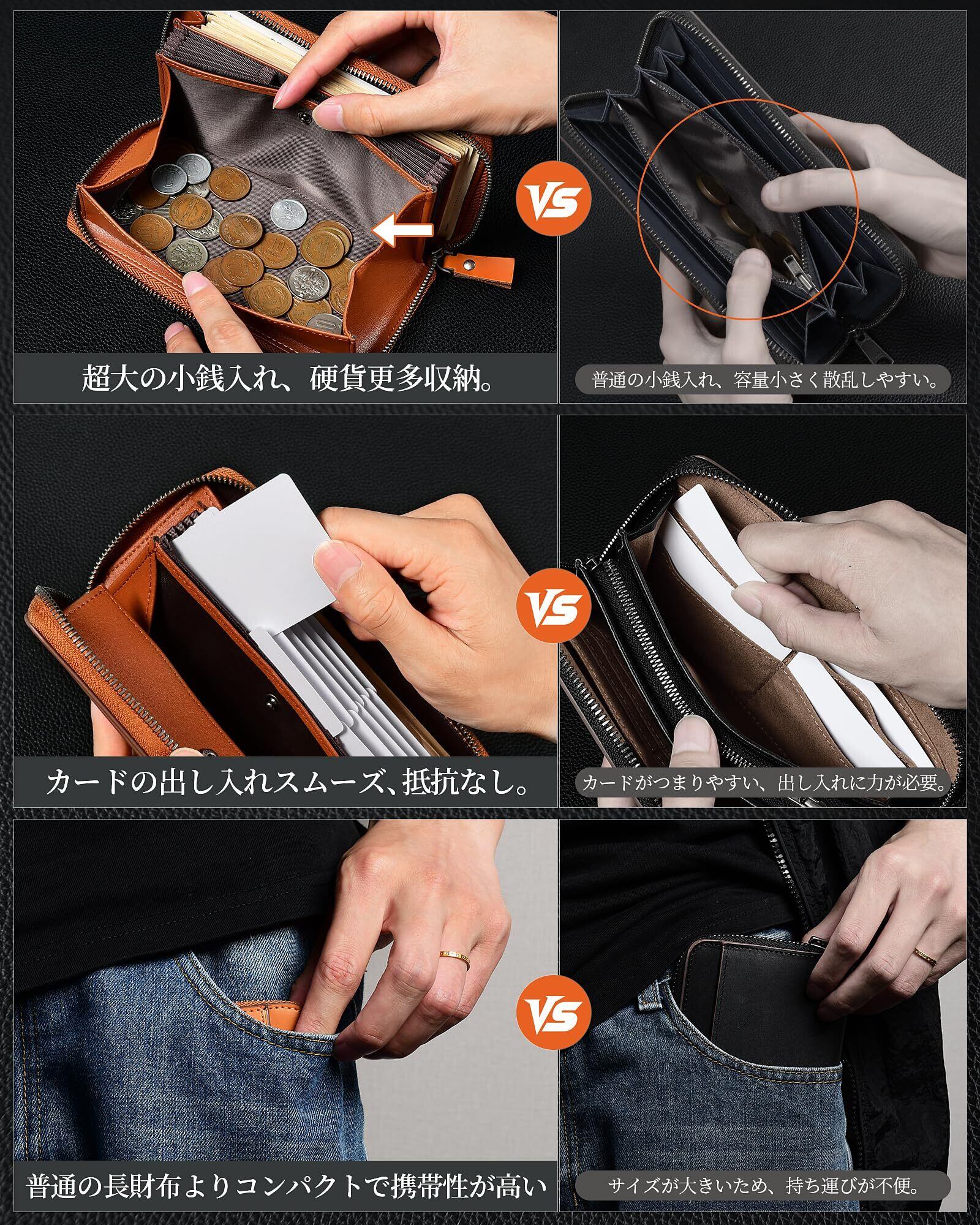 【大容量多機能メンズ長財布】20枚以上の紙幣+16枚のカード+コイン入れ×1が収納可能。札入れ部は広口仕様で出し入れがスムーズ、ビジネスや旅行にも最適です。内側にはIDカード用ポケット付き(運転免許証や社員証の取り出しが便利)。