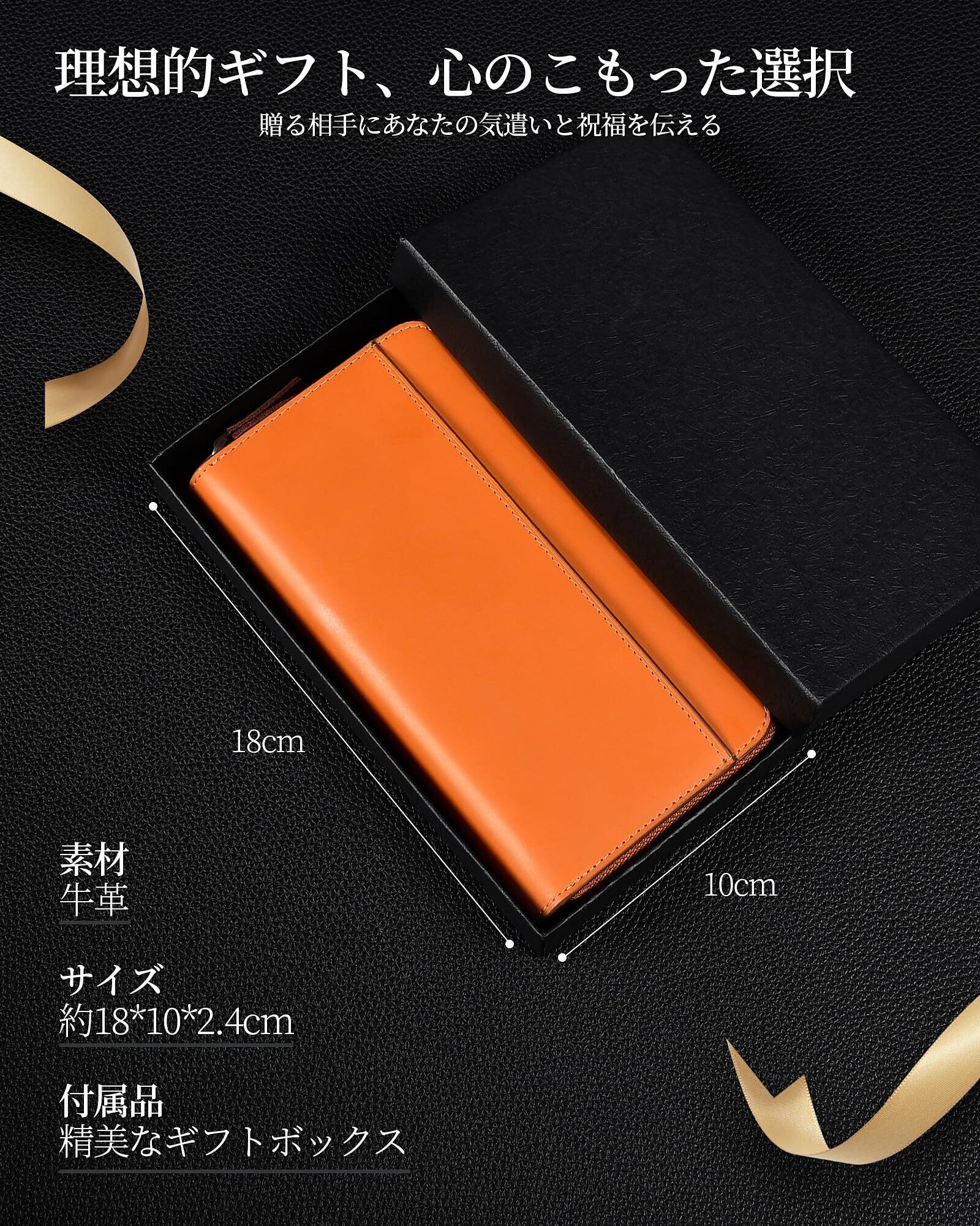 【高級本革の美しさと耐久性】 本品は100%天然牛革を使用した本格的な長財布です。なめらかな手触りと深みのあるツヤが、経年変化とともに味わい深い風合いへと進化(経年美)。丈夫な縫製と厚みのある皮革で、日常使いにも長く愛用いただけます。
