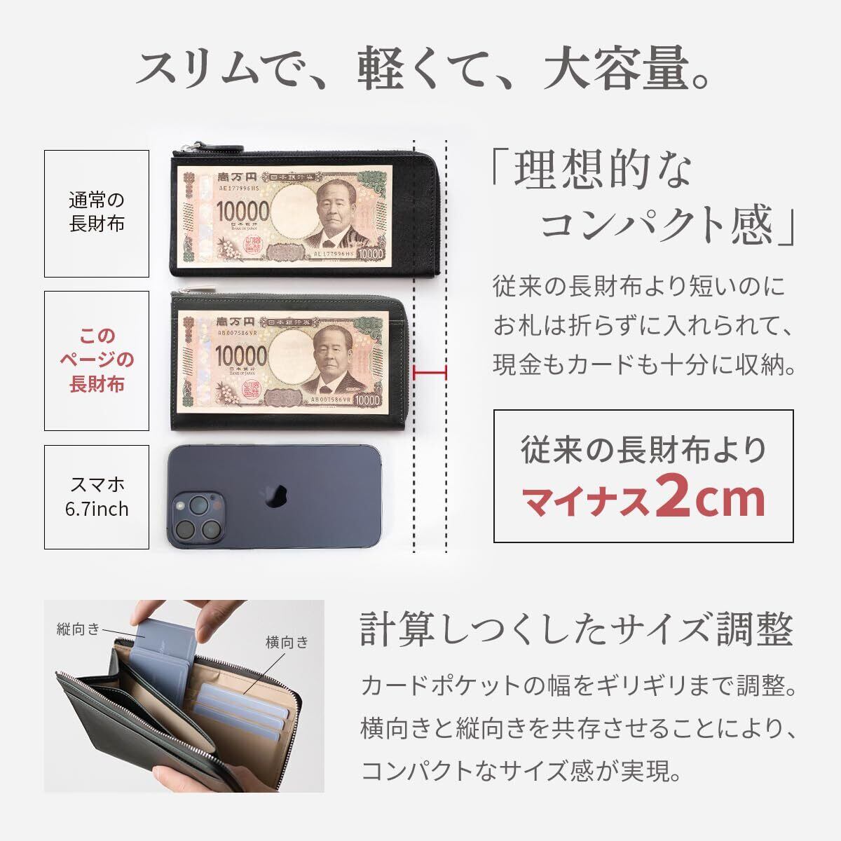 小さい長財布 メンズ 本革 お札を折らない スリム 薄い 大容量 カード16枚収納 イタリアンレザー 横幅18cm 短い L字ファスナー 小銭入れ ブラウン