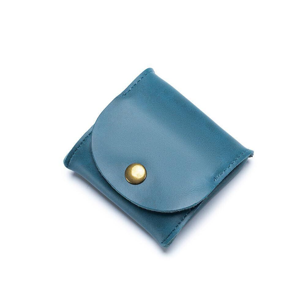 LOYELEY ミニ財布 小銭入れ ボックス型 コインケース コンパクト コイン収納 本革 薄型 ボタン式 小銭財布 男女兼用 (ブルー)