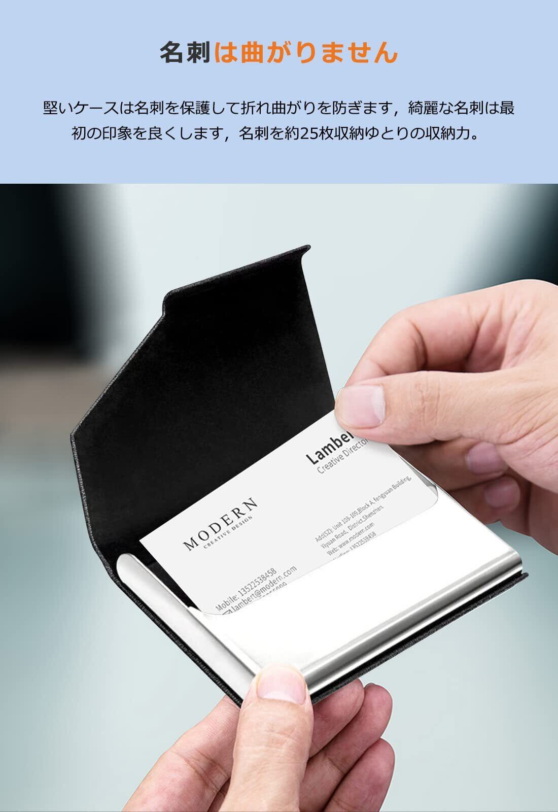 収納枚数:25枚前後(カードの厚みによって差異があります)、マグネットタイプで1秒開閉、名刺交換の時スムーズに取り出すことができます