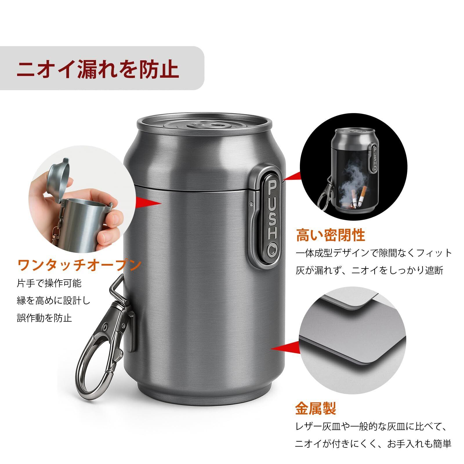 【新春セール】携帯灰皿 ワンタッチ開閉 ミニ 軽量 小型収納 携帯に便利 おしゃれ 高い密閉性 臭い漏れを防ぐ 車載・屋外・緊急収納・公共の場使用可 頑丈で耐熱性 キーホルダー付き 贈り物の選び方 (シルバー)