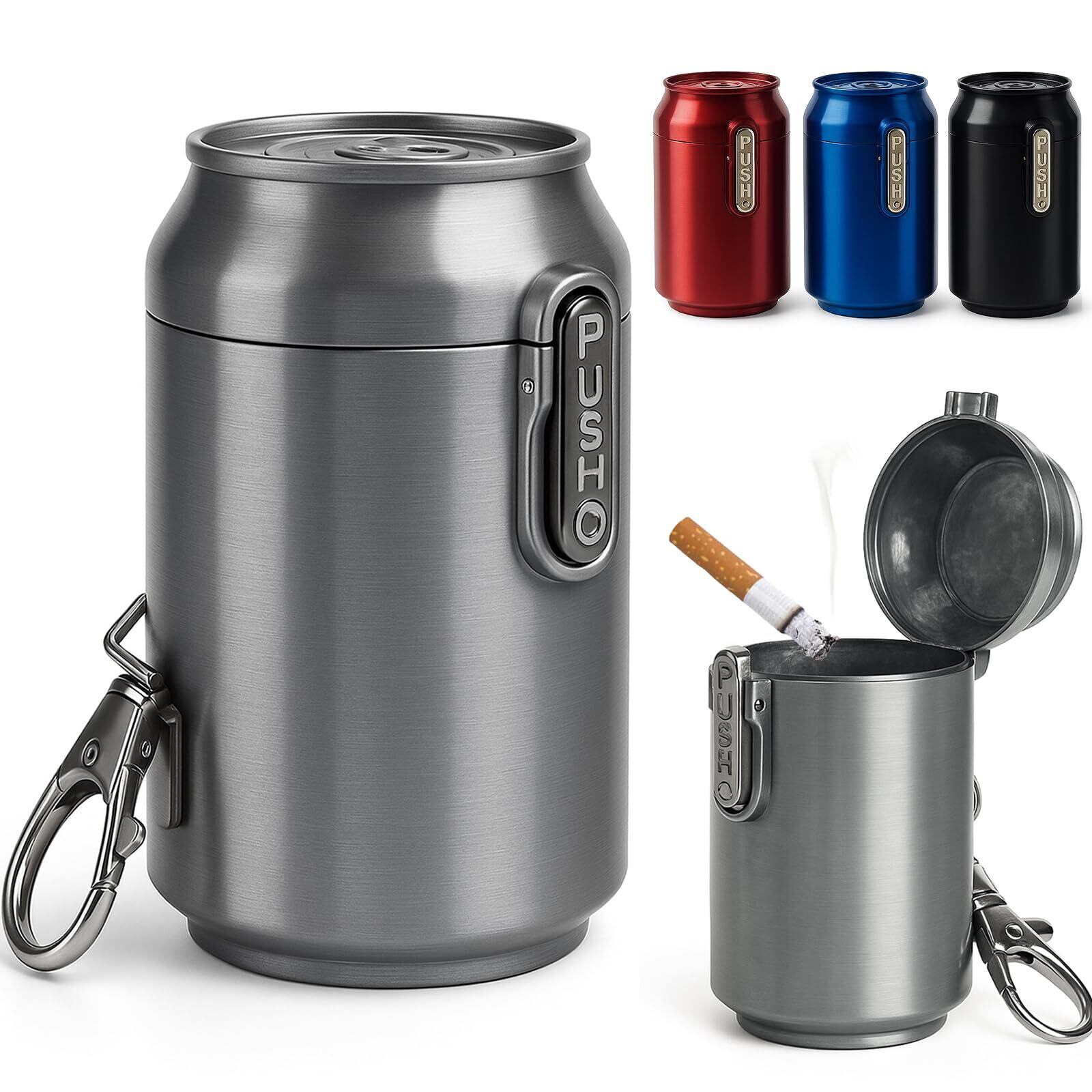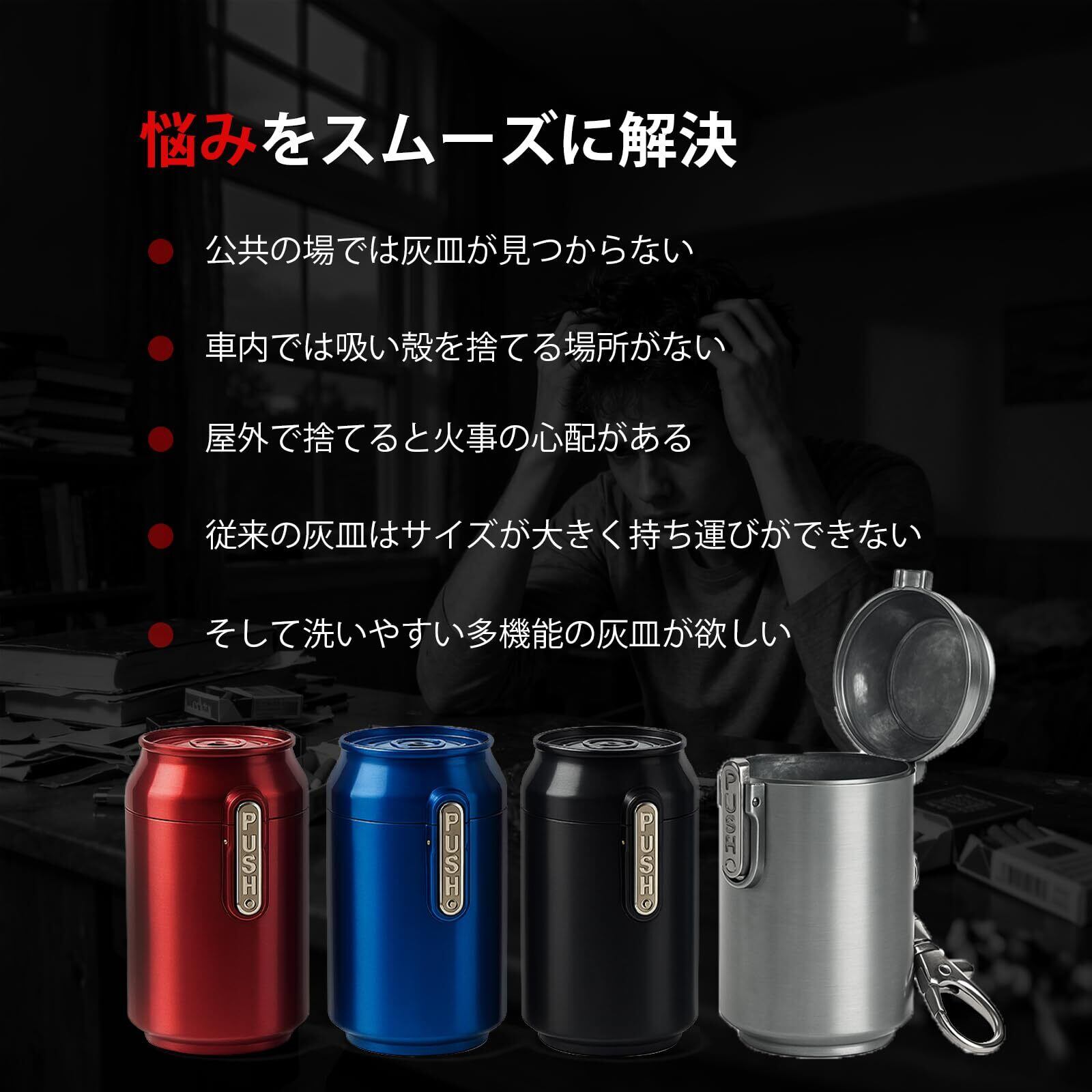 【多彩なシーンで活躍】クラシックブラック、シルバー、ブルー、レッドの人気4色展開。 おしゃれな携帯用灰皿として、ビジネスにもカジュアルにもマッチします。デスク、車内、通勤、旅行、キャンプなど、さまざまな場面にフィット。人気の防臭ポケット灰皿・車灰皿として、プレゼントにもおすすめです。