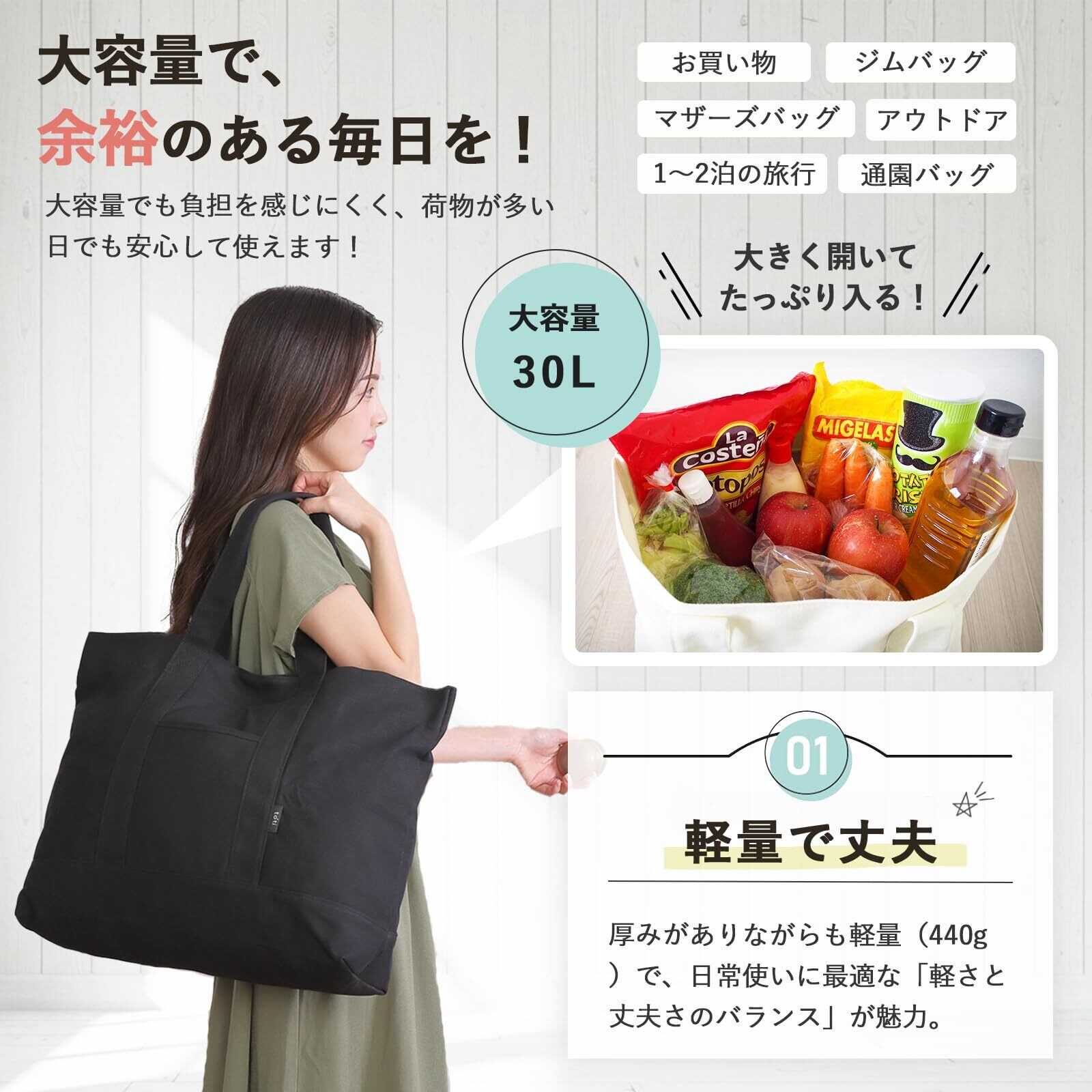 30L 大容量 トートバッグ 大きめ キャンバス 厚手 軽量 綿100% 肩掛け メンズ レディース 買い物 旅行 アウトドア 通勤 通学 保育園 サブバッグ エコバッグ
