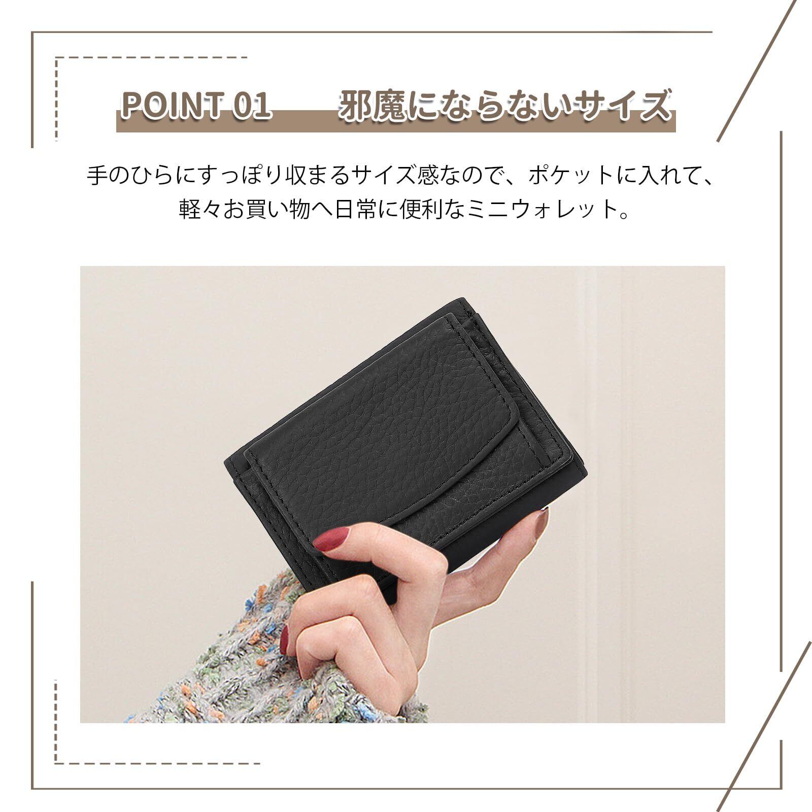 ミニ財布 三つ折り財布 レディース メンズ 本革 小さい財布 スキミング防止 小銭入れ付き みつおり 牛革 軽量 コンパクト RFID (ブラック)