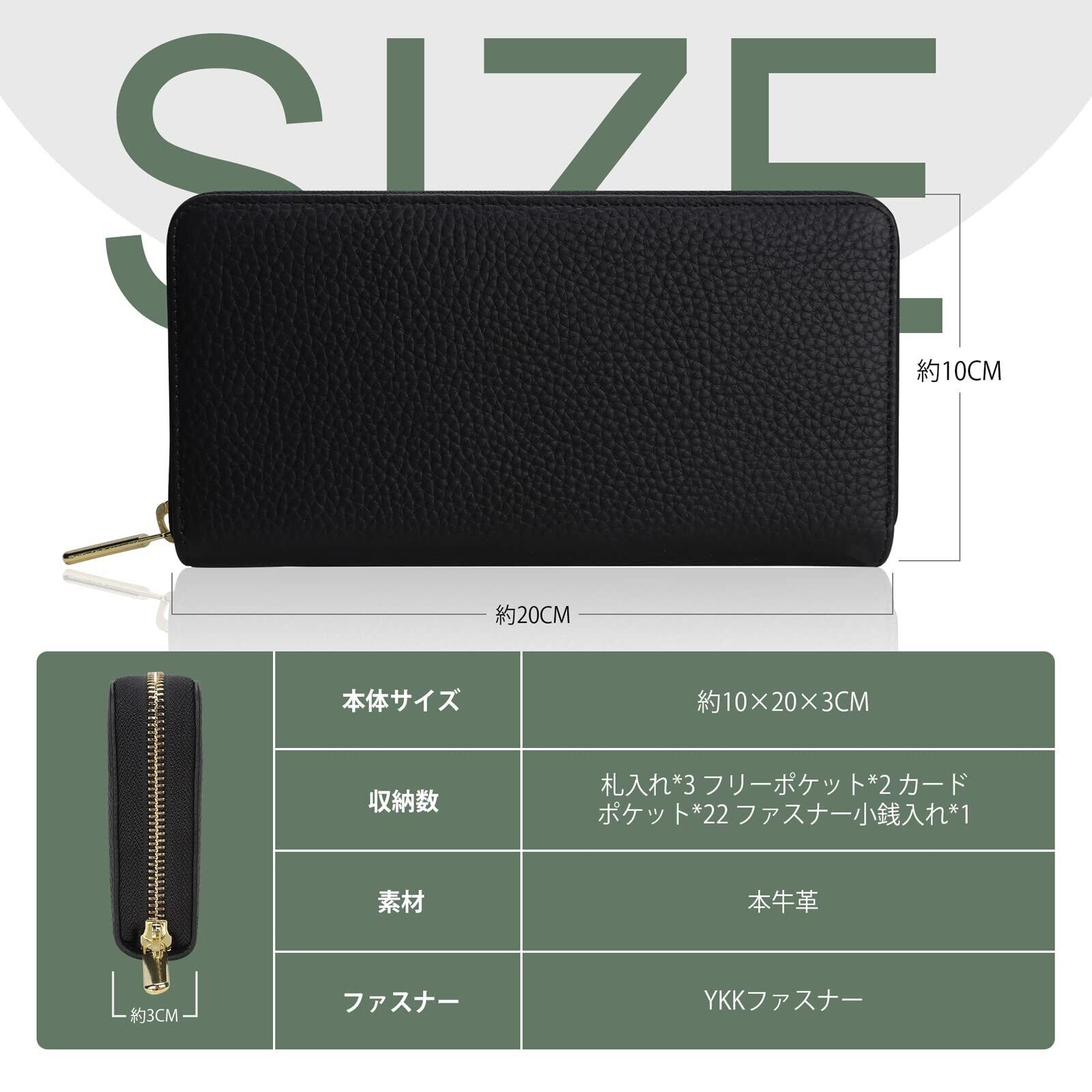 【2022最新】2026年 長財布 レディース 財布 本革 牛革 多機能財布 YKKファスナー カード22枚 長 財布 大容量 本革 長サイフ (ブラック)