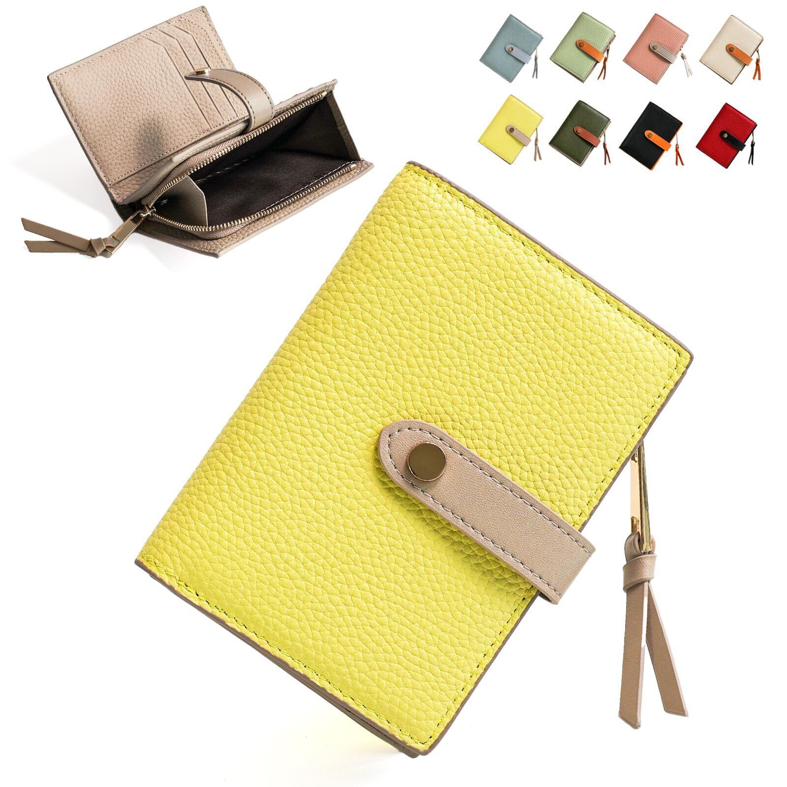 【2022最新】二つ折り財布 本革 ミニ財布 コンパクト二層札入れ 大容量 8枚カード L字ファスナー小銭入れ RFIDスキミング防止 おしゃれ ウォレット (レモンイエロー×グレージュ)