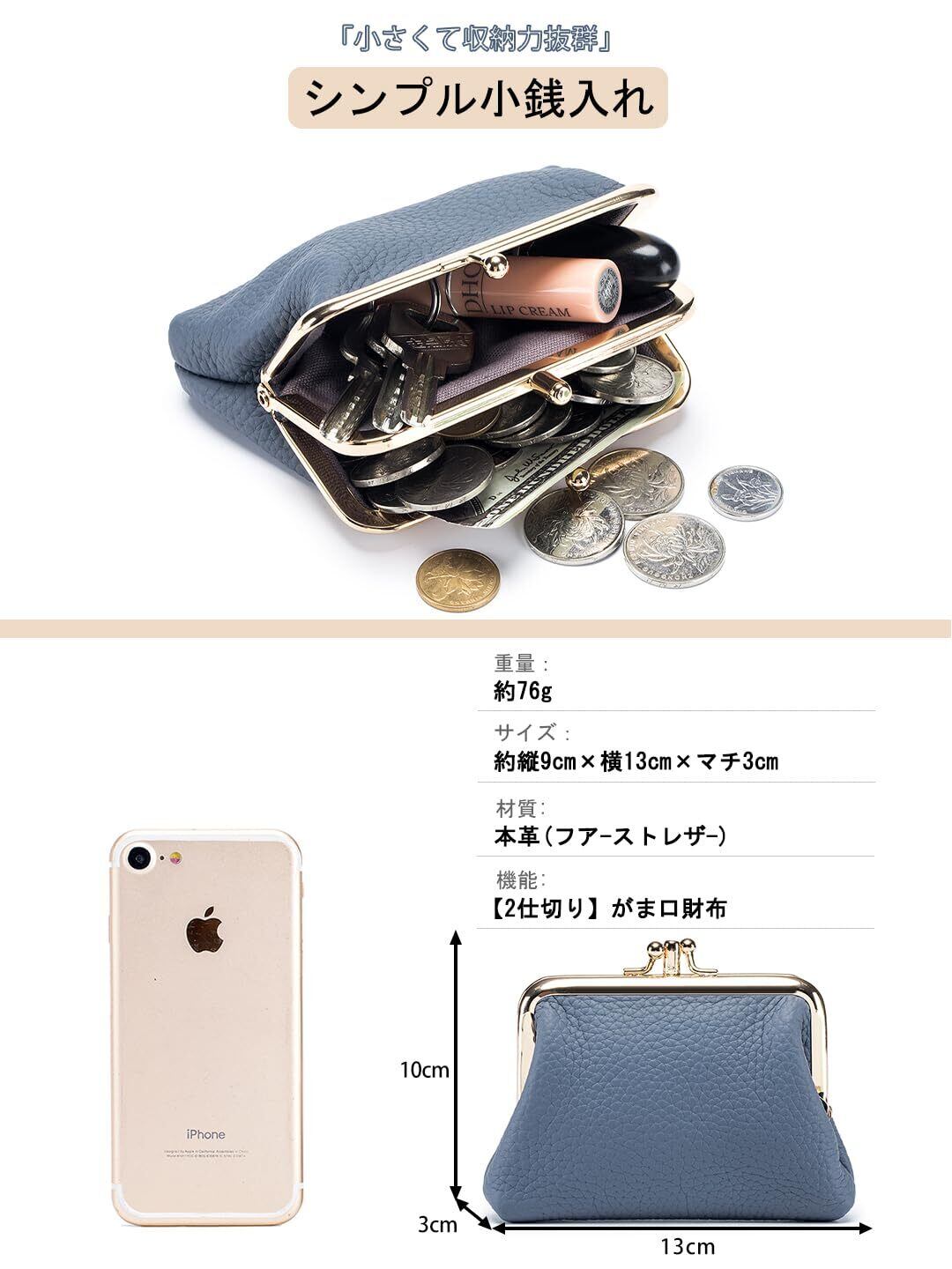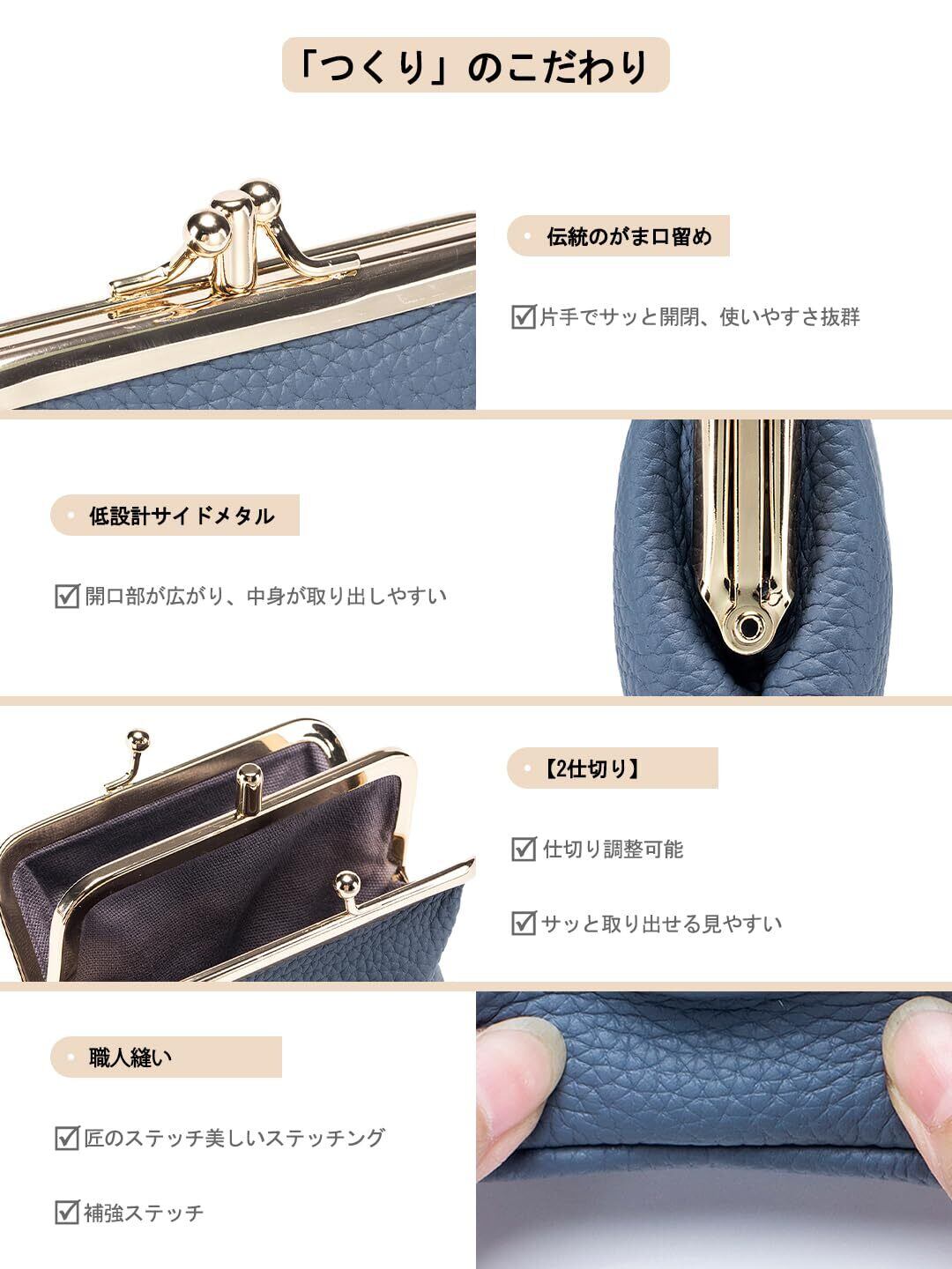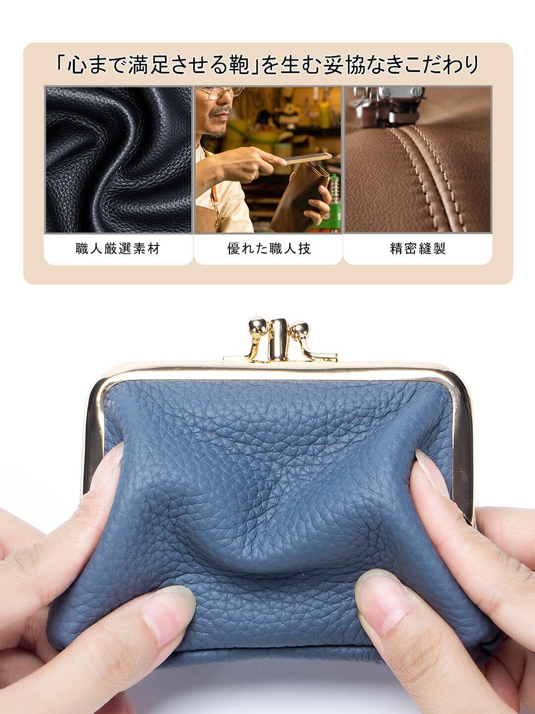 【プレゼントに最適・ブランド】 細やかな職人技により、シンプルな中にも品格が漂うがま口財布。サイズ:約縦10cm×横13cm×マチ2.5cm、重さ約76g。幅広いライフスタイルに合うように設計されており、家の鍵だけでなく、車のスマ一トキ一も収納できます。ビジネスシーンでもプライベートでも、小銭・鍵・現金を一元管理できる便利さで、毎日の生活をサポートします。親友、同僚、先輩、家族にAMZBAG(驚くべきバッグ)を贈ろう。さらに、本革ミニ財布には安心の180日アフターサービス付き。長くご愛用いただけます。