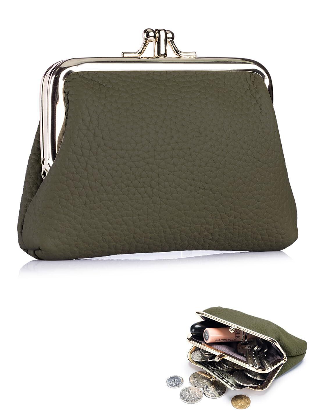 がま口財布 小銭入れ レディース 本革 仕切り調整可能 サッと取り出せる見やすいコインケース ミニ財布 大容量 軽量 coin purse 小銭ケース カード/コイン/紙幣/キーを収納 コンパクト かわいい 多機能 防水 おしゃれ ギフト 一粒万倍日(カーキ)