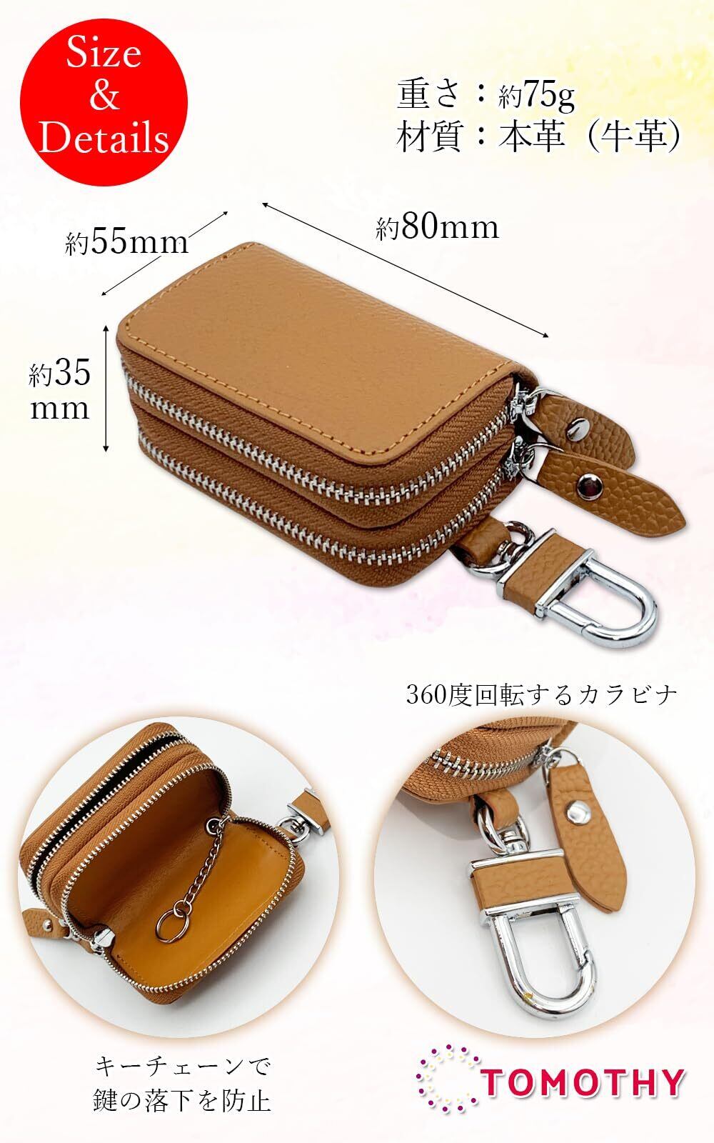 TOMOTHYのキーケースは小銭入れとスマートキーケースが一体型になった便利なアイテムです。 多機能性を追求したこの商品は一方に小銭やお札を収納できもう一方にはスマートキーを収納できます。 小銭入れのスペースには仕切りがあり、お金を整理しやすくなっています。 また、スマートキーケース部分にはチェーンが付いているため、キーをしっかりと固定することができ安心して持ち運ぶことができます。 カラーバリエーションも豊富で、ブラック、ホワイト、レッド、ピンク、ブルー、オレンジ、キャメルの7色が揃っています。 自分のスタイルや好みに合わせて選ぶことができ、カバンの中でも見つけやすいです。色鮮やかなデザインが、日常使いをより楽しくしてくれます。 このキーケースのサイズは80×55×35mmとコンパクトで、ポケットや小さなバッグにもすっぽりと収まります。 持ち運びに便利なサイズ感で、日常生活での使用に最適です。財布一体型の設計により、必要なものをコンパクトにまとめて持ち運ぶことができます。 素材には高品質な本革を使用しており、シボ加工が施されているため、傷が目立ちにくくなっています。 本革の持つ自然な風合いと耐久性が、長く使い続けることを可能にし、使い込むほどに味わいが増します。 キーケースには360度回転するカラビナが付いており、カバンやズボンの腰に簡単に取り付けることができます。 このカラビナにより、キーケースを取り出す手間が省け、使いやすさが向上します。 このキーケースは、レディース・メンズ問わずどなたにもお使いいただけるデザインです。 シンプルでありながらスタイリッシュな外観は、ビジネスシーンからカジュアルな日常使いまで、幅広いシーンで活躍します。 高品質な素材と機能性に優れた設計により、長く愛用していただける商品です。自分用としてはもちろん、ギフトとしても最適です。 豊富なカラーバリエーションが揃っているので、家族や友人へのプレゼントにも喜ばれることでしょう。 この多機能キーケースで毎日の生活をより便利に、スタイリッシュにお過ごしください。 小銭も入る設計とスマートキーケースとしての機能を兼ね備えたこの商品は、あなたの生活を一段と快適にしてくれることでしょう。 実用性とデザイン性を兼ね備えたこのキーケース。30日間返品付きです。