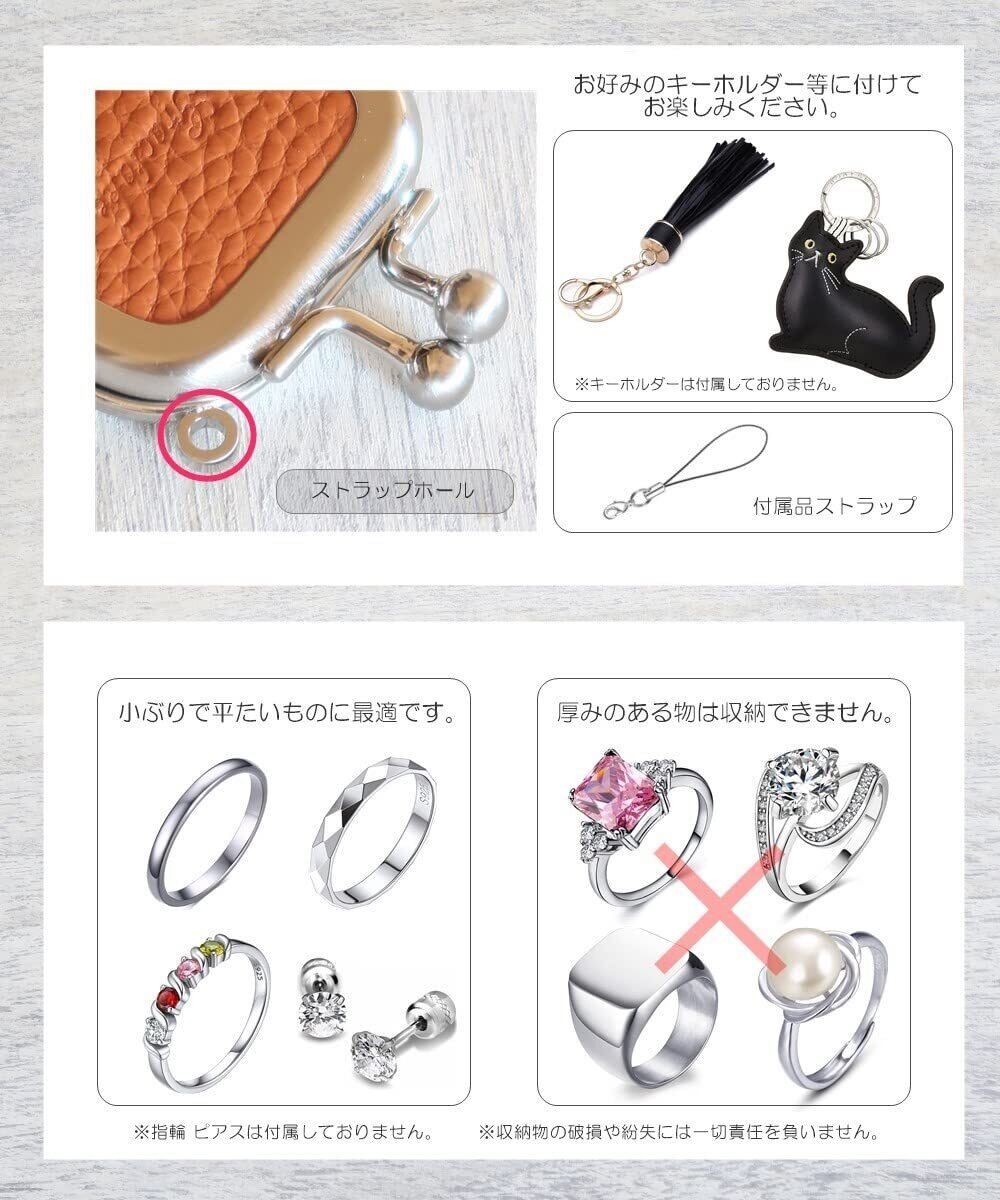 アクセサリーケース 携帯用 ミニ かわいい 指輪ケース 2個用 持ち運び 本革 レザー がま口 レディース 小さい 小銭入れ (オフホワイト)