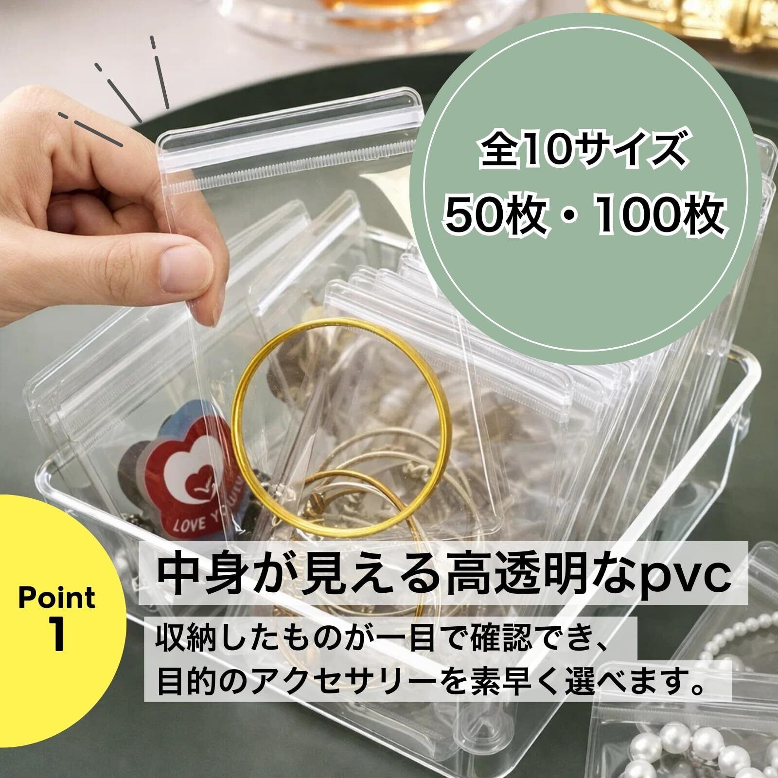 ジュエリー収納 PVCチャック袋 (厚さ:0.48mm, 7x10cm 50枚) ジッパー付き10サイズ 防湿 密封 変色防止 小分け 透明 NYANDELMO ND-0365-R10-48-7x10cm-50