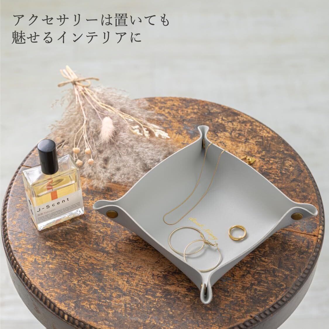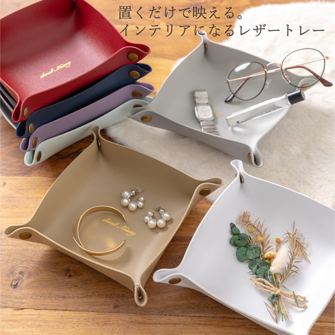 時計や指輪、ピアス、ネックレスなどを置いたり、鍵の保管に便利なトレーです。