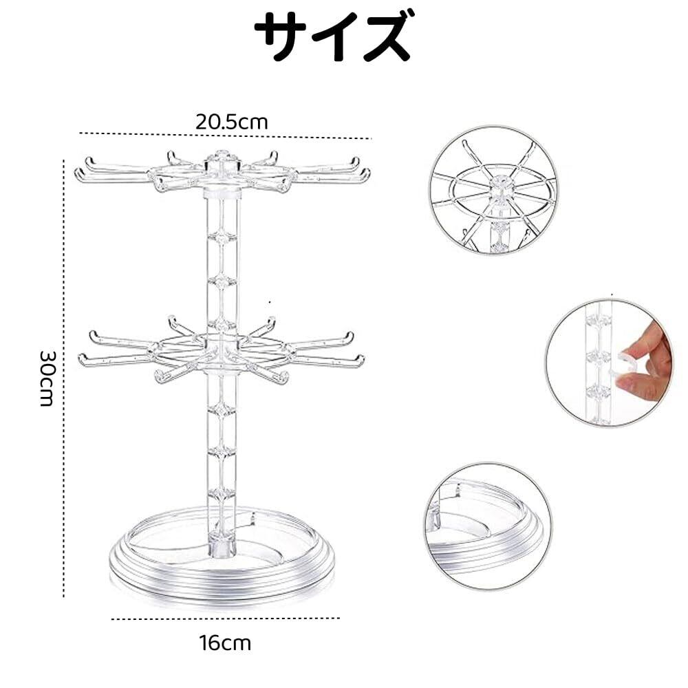 アクセサリースタンド ジュエリースタンド大容量 360 度回転 省スペース リングスタンド 吊り下げオーガナイザー ホルダー 調節可能 ネックレス 鍵 小物 ジュエリー収納 (2 段式-クリア)