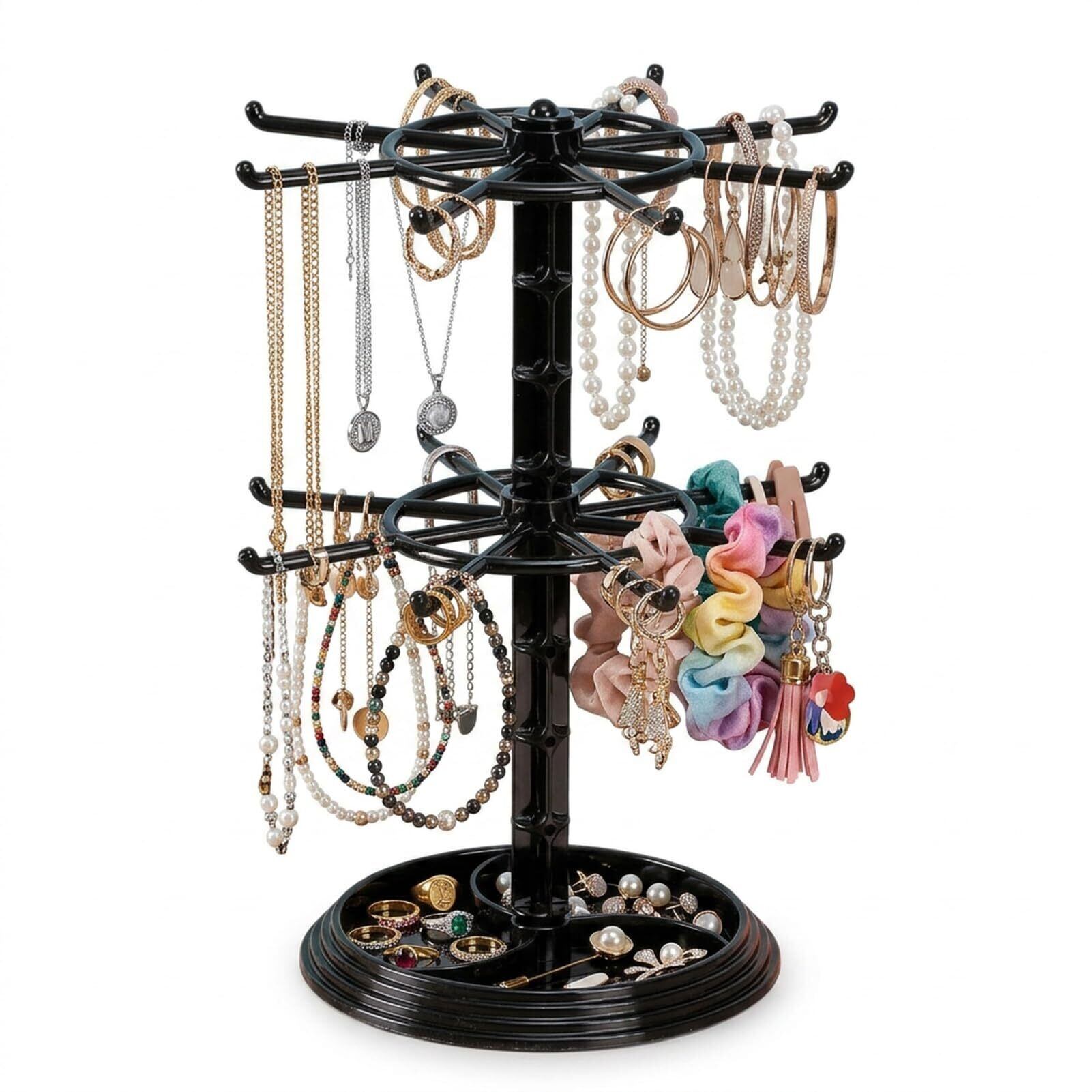 【新春セール】アクセサリースタンド 360度回転式 ジュエリースタンド ジュエリースタンド 3段 2段 透明 大容量 キーホルダー収納 ネックレス ピアス ブレスレット 腕時計 ジュエリースタンド ディスプレイスタンド 鍵置き 小物収納 トレイ付き 省スペース設計 卓上展示 収納グッズ 店舗用 自宅用 おしゃれ (透明3重)