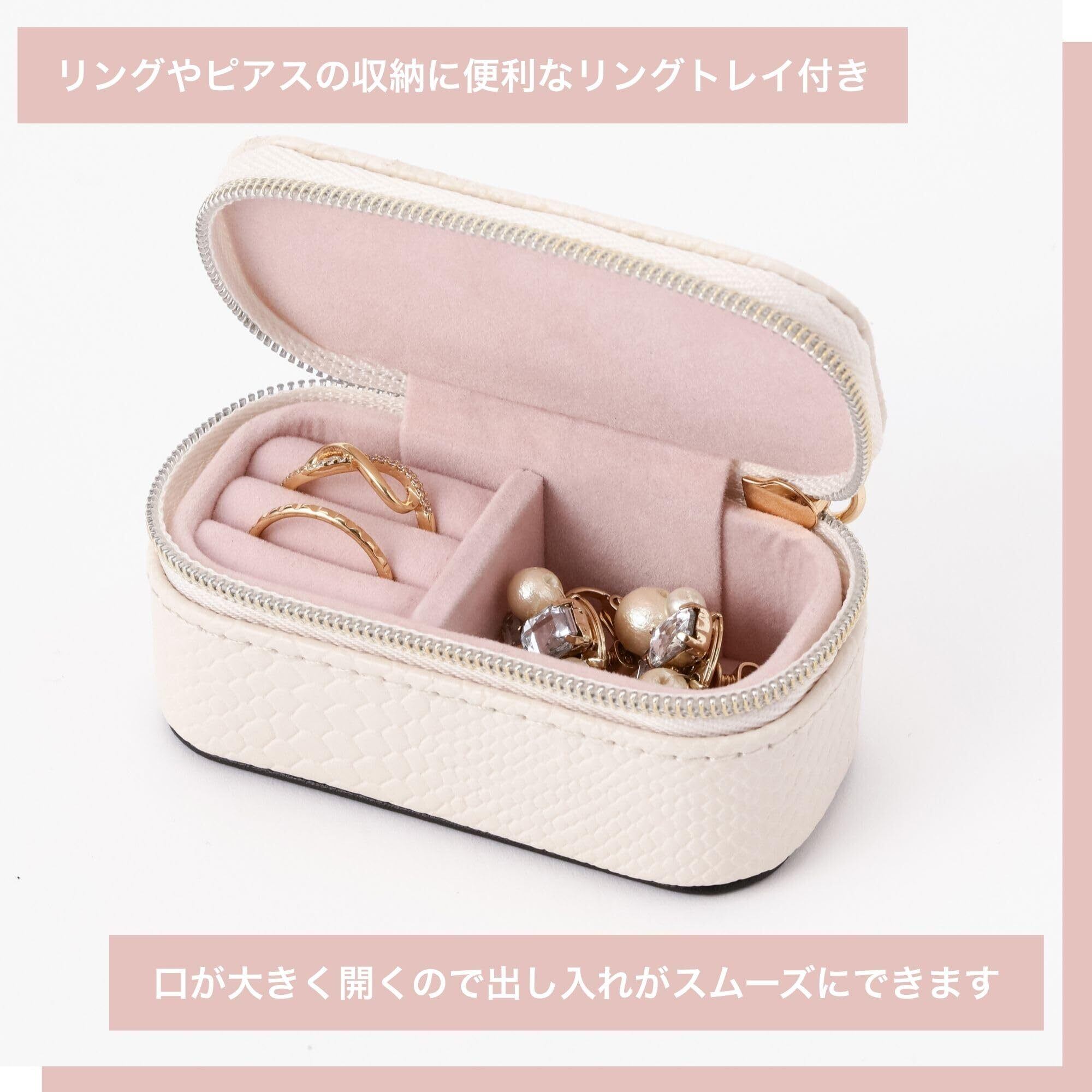 繊細な刺繍がエレガントな手のひらサイズの小さなジュエリーボックスです。旅行やジム、仕事中など一時的にジュエリーを外さなければいけない時に活躍。
