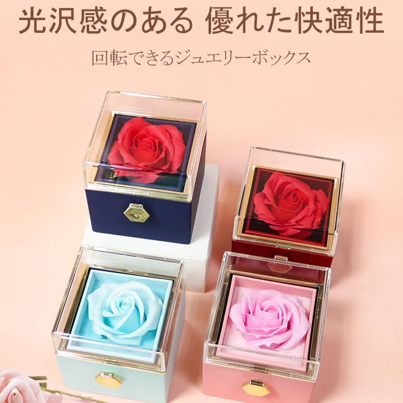 1. 永遠に美しいプリザーブドフラワー: この回転ジュエリーボックスには、枯れることのない美しいプリザーブドフラワーがあしらわれており、特別な瞬間を永遠に彩ります。